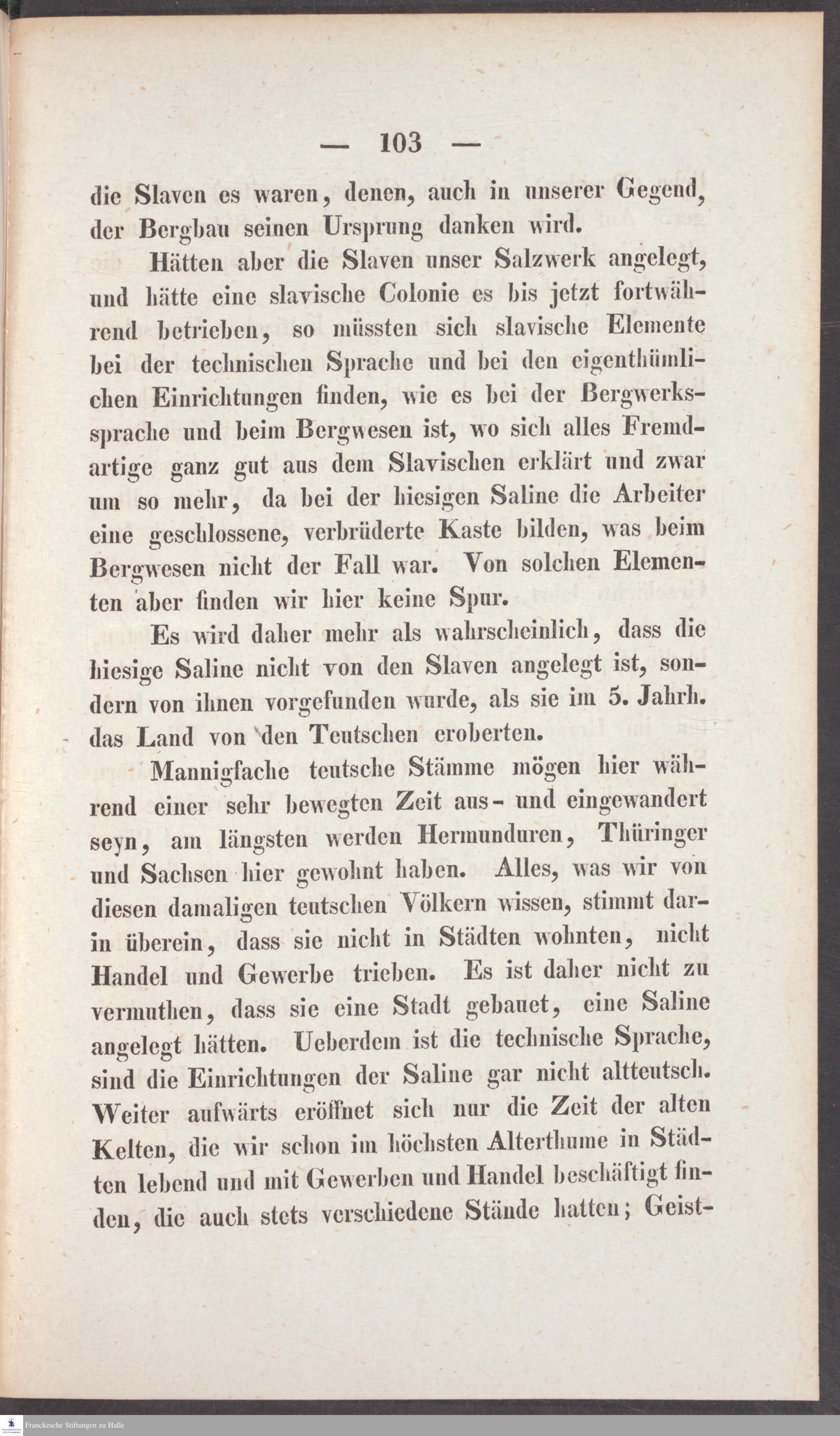 Ueber die Halloren, als eine wahrscheinlich keltische Colonie, den Ursprung des Halleschen Salzwerkes und dessen technische Sprache : Ein Versuch / von Ch. Keferstein