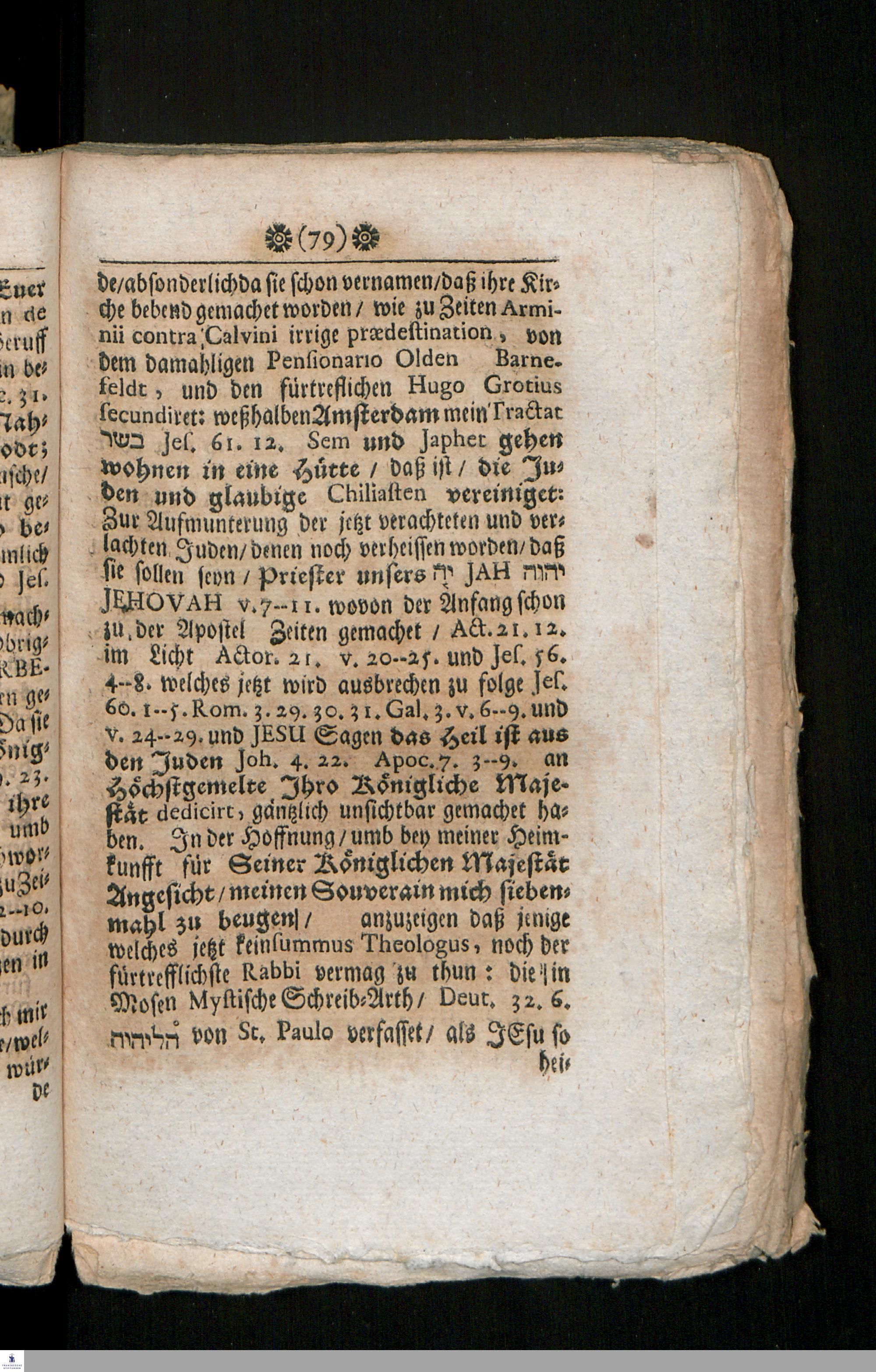Kurtzer Bericht/ An alle Puysancen von Europa, In deren Gebiet Juden sind/ wo jetzt von Oliger Paulli geredet wird/ Betreffend Seinen Beruff/ Daß er/ wie in seinen vielfältigen Schrifften bezeuget wird/ von Jehovah GOtt der Hebräer begnadiget sey/ umb an die Juden zu schreiben/ Apoc. 3. 20. Siehe Ich stehe an der Thür [et]c. dargegen an die jetzigen Christen/ v. 1. Ich weiß deine Wercke/ daß du den Nahmen hast/ daß du lebest und bist todt : Dienende Zur Vereinigung der Juden und Christen, Jes. 2. 2--5. 56. 8. 60. 1--5. Apoc. 7. 3--9. / [Oliger Paulli]