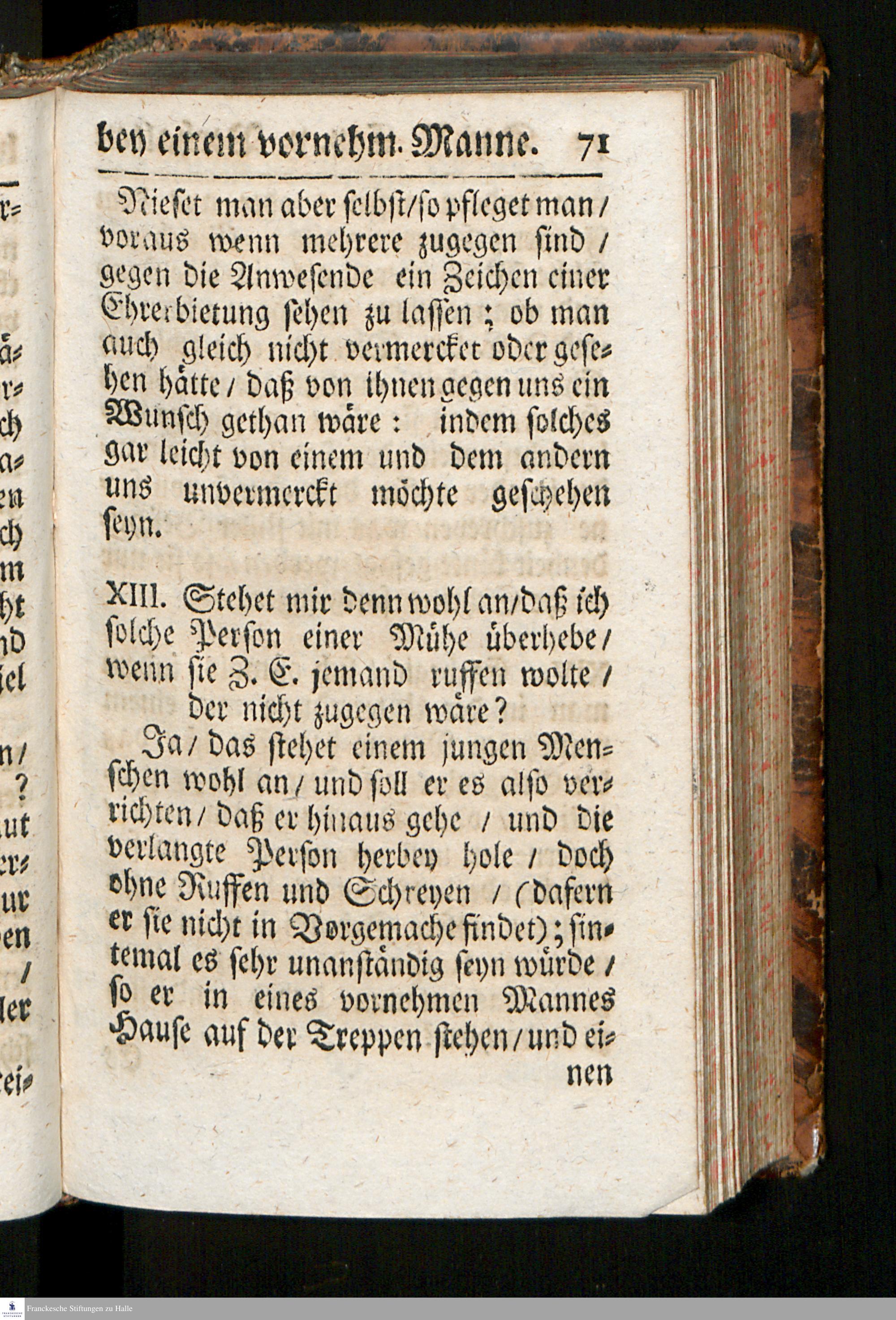 Nützliche und nöthige Handleitung Zu Wohlanständigen Sitten : Wie man sich In der Conversation/ auf Reisen/ im Briefschreiben und Einrichtung der Geschäfte sittig/ bescheiden/ ordentlich und klüglich verhalten solle: Zum Gebrauch des Pädagogii Regii Zu Glaucha an Halle abgefasset / [Hieronymus Freyer]