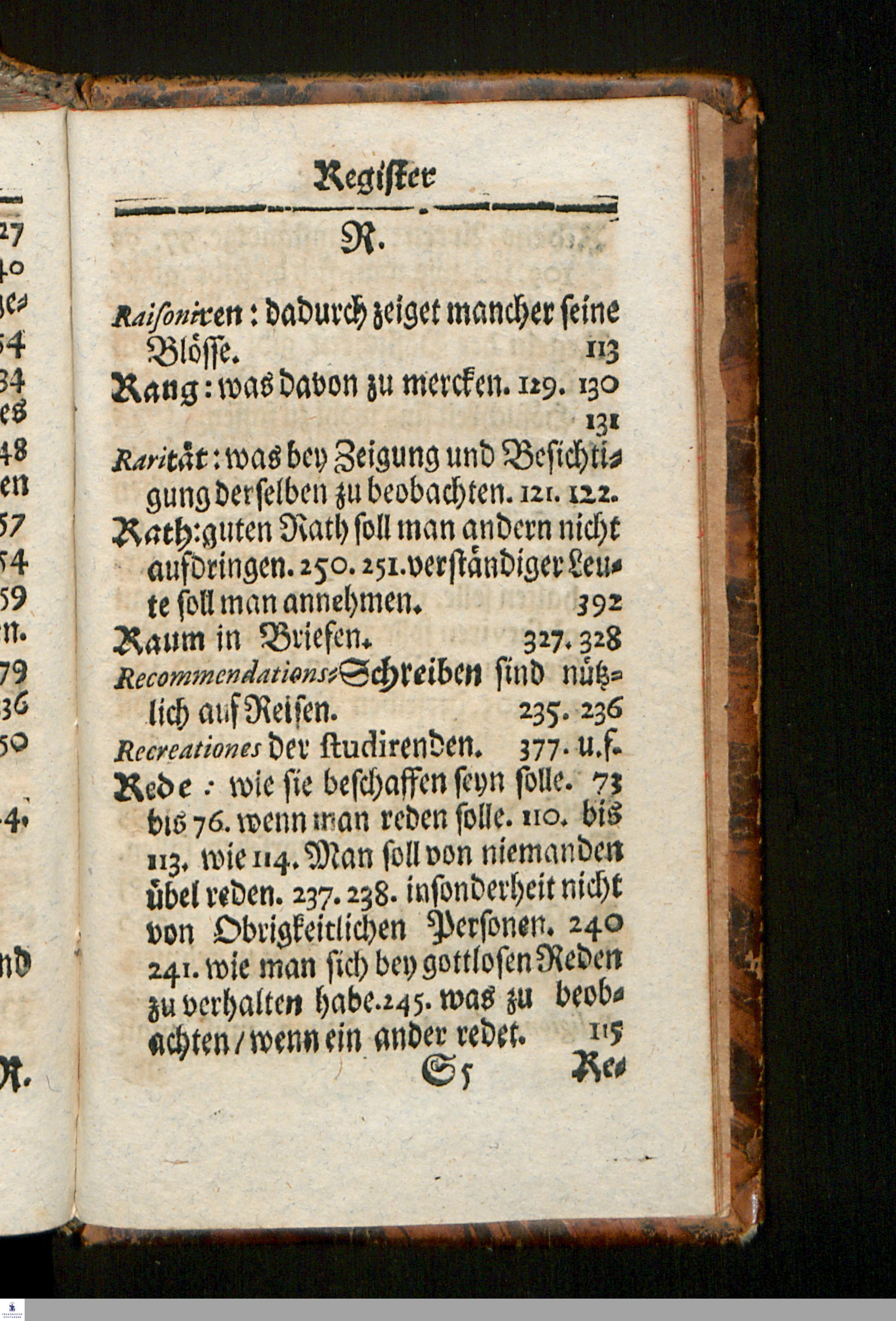 Nützliche und nöthige Handleitung Zu Wohlanständigen Sitten : Wie man sich In der Conversation/ auf Reisen/ im Briefschreiben und Einrichtung der Geschäfte sittig/ bescheiden/ ordentlich und klüglich verhalten solle: Zum Gebrauch des Pädagogii Regii Zu Glaucha an Halle abgefasset / [Hieronymus Freyer]