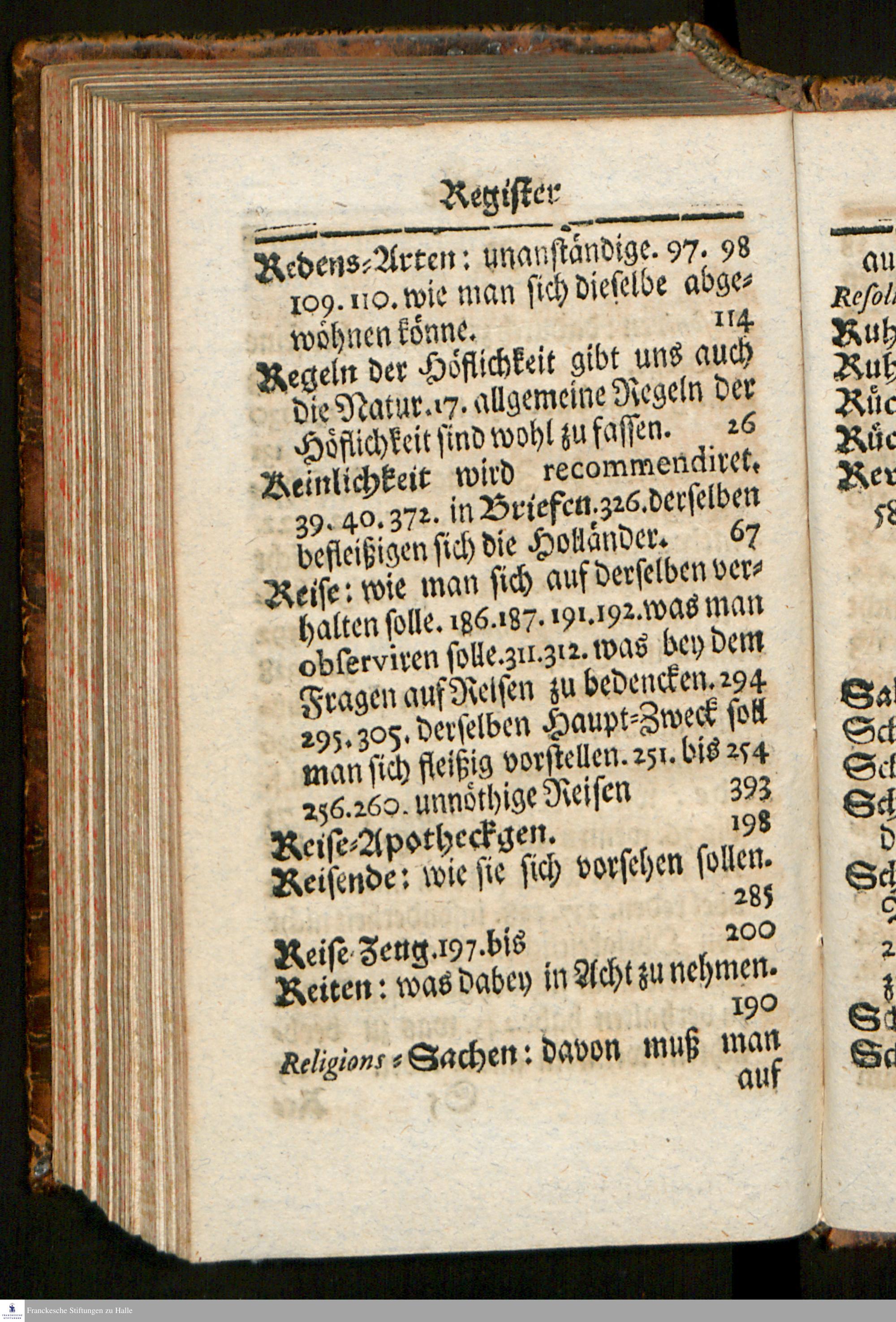 Nützliche und nöthige Handleitung Zu Wohlanständigen Sitten : Wie man sich In der Conversation/ auf Reisen/ im Briefschreiben und Einrichtung der Geschäfte sittig/ bescheiden/ ordentlich und klüglich verhalten solle: Zum Gebrauch des Pädagogii Regii Zu Glaucha an Halle abgefasset / [Hieronymus Freyer]