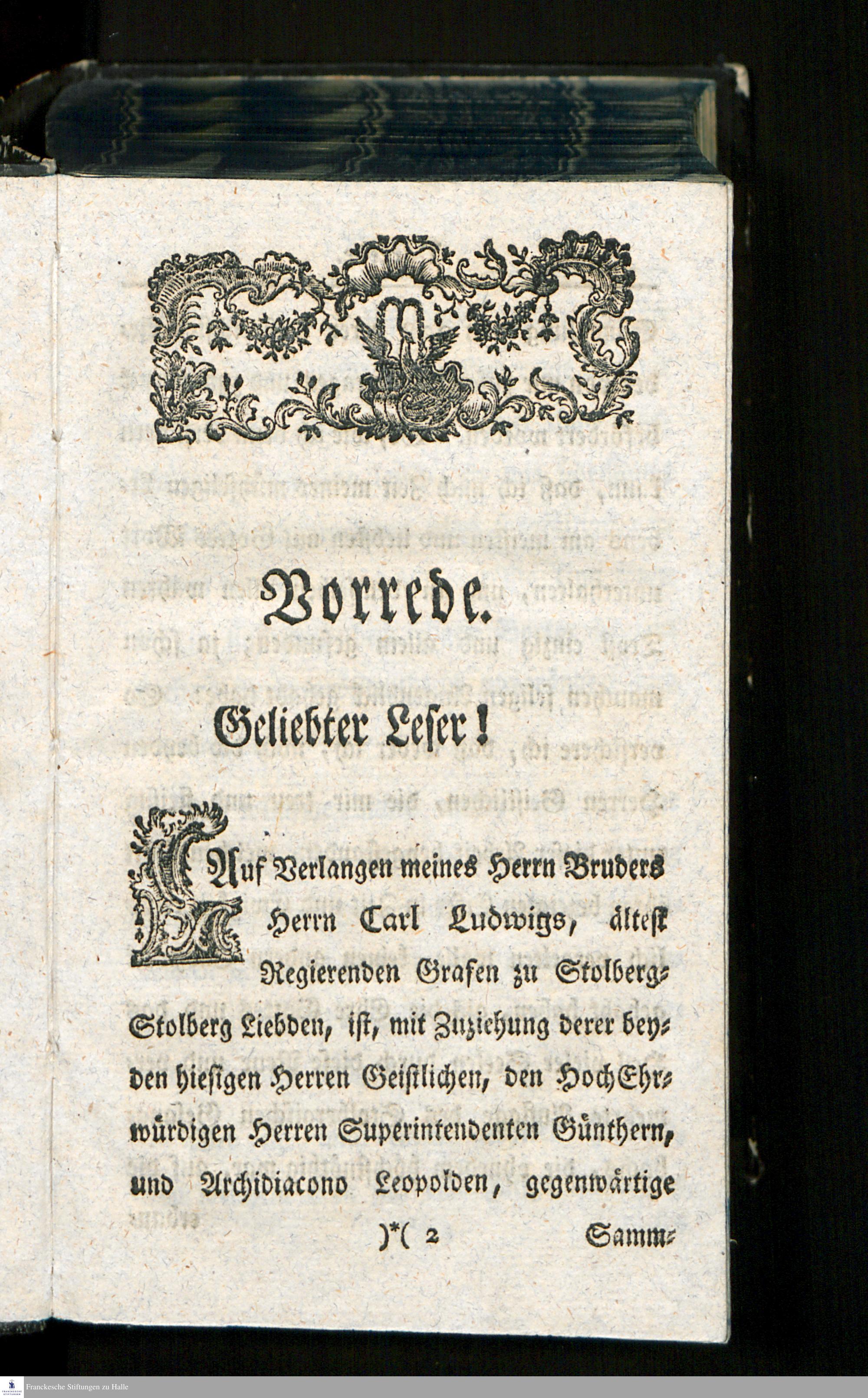Auf gnädigste Anordnung zur Ermunterung einer Gottgefälligen Andacht Neu eingerichtetes Stolbergisches Gesang-Buch : benebst einigen Gebeten und vollständigen Lieder-Register, auch sind die Kollecten auf alle Sonntage und Festtage mit beygedruckt