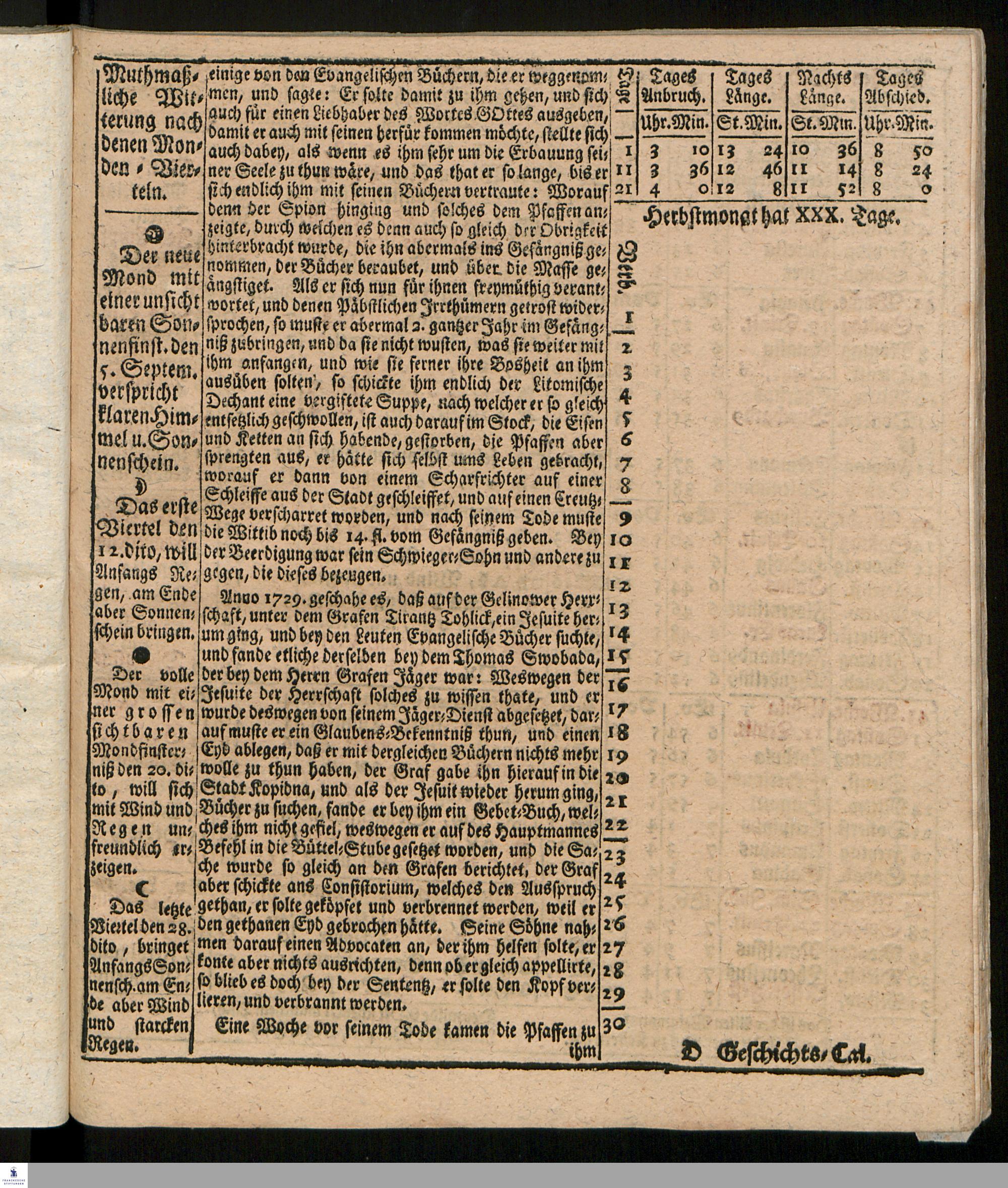 Verbesserter und neu-eingerichteter Geschichts-Calender, Auf das Schalt-Jahr nach Christi Geburt MDCCXXXVI. : Worinnen alles mit besonderm Fleiß calculiret, auch der Sonnen u. Mondes Auf- u. Untergang angemercket und der Leser mit anmuthigen Geschichten vergnüget wird : Mit gnäd. Special-Concession / [Johann Abraham Vogel]