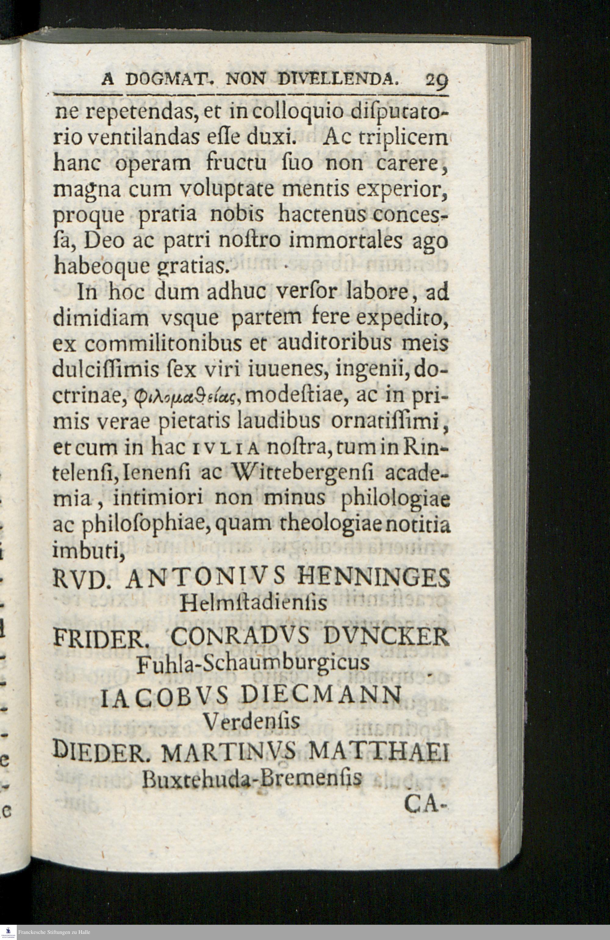 Christiani Mündenii S. Theol. D. Et In Acad. Ivlia Prof. Ord. Selectae Theses Theologicae Vniversam Doctrinam Christianam Exhibentes : Et Maximam Partem Ex Cel. Ioannis Francisci Buddei Institvtionibvs Theologiae Dogmaticae In Vsvm Avditorvm Adornatae