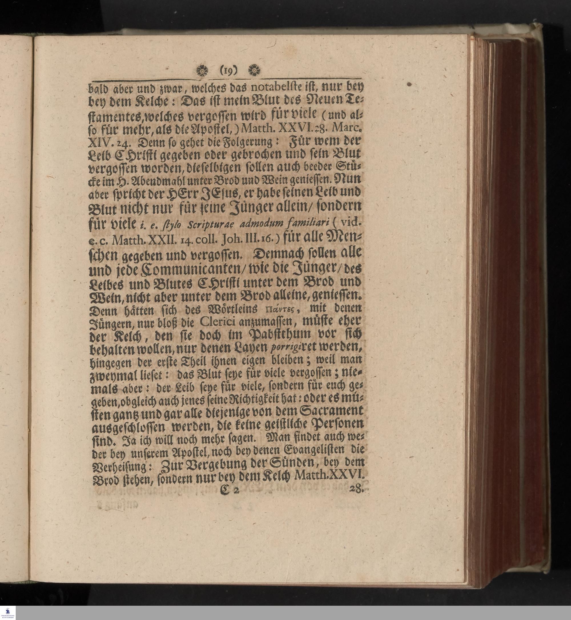 Schrifftmässige Rettung Des Wahren Verstandes Der Paulinischen Worte 1. Cor. XI, 23. sqq. Wieder die/ Zur Behauptung der Papistischen Lehre Von der Geniesung des Heil. Abendmahls unter einerley Gestalt/ Am 5. Sonntage nach der Erscheinung Christi von Hr. Pater Nonhart In der Römisch-Catholischen Schloß-Capelle zu Dreßden vorgebrachte/ fürnehmste Beweiß-Gründe / Zur Verwahrung vieler Evangelischen Glaubens-Genossen Gewissenshalber ausgefertiget Von Einem damahligen Zuhörer M.L.B.
