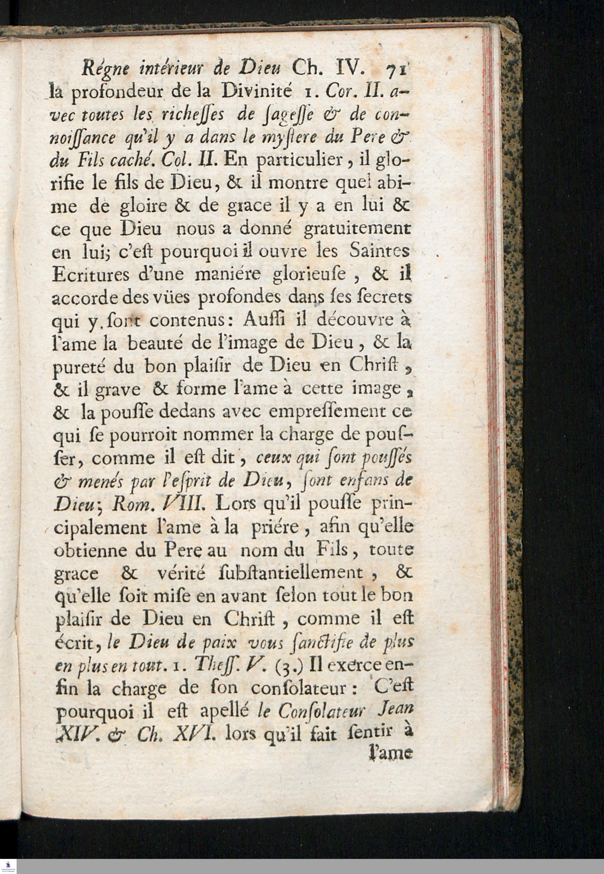 Considerations Du Regne Interieur De Dieu Comment Il s'établit & se dresse dans les cœurs des Humains / Mises au jour pour l'édification commune Par Samuel Roy Professeur à Berne dans l'Histoire de l'Eglise ... Imprimées en Langue Allemande à Bâle & traduites par un Ami de la vérité du Régne intérieur de Dieu, & Disciple de l'Autheur. [Joseph d'Eymond]