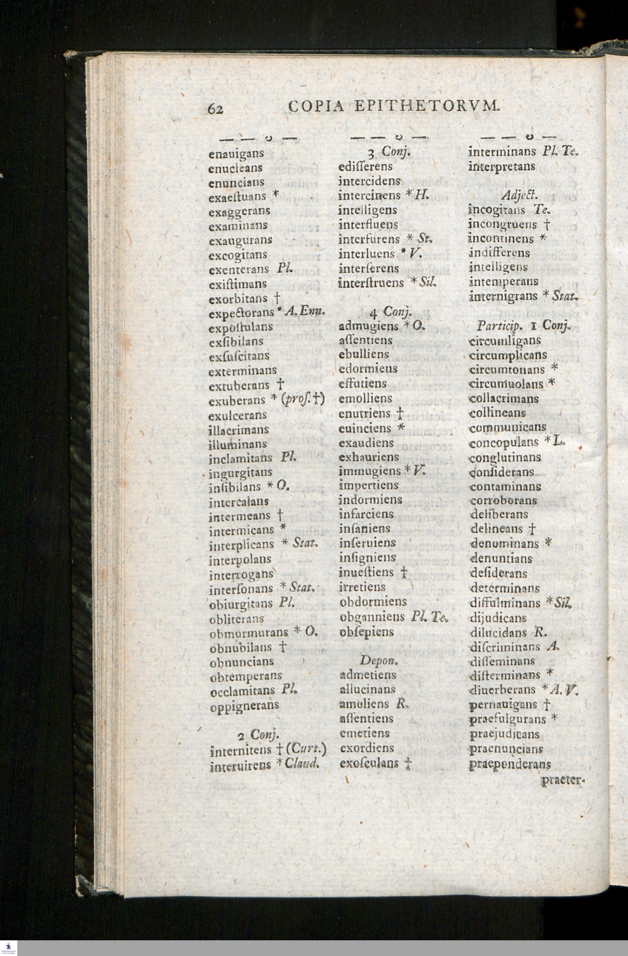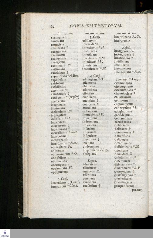 Copia Epithetorvm, Svbstantivorvm, Verborvm, Adverbiorvm, Item Indices Deorvm Atqve Herorvm Vetervm, Descriptionvm, Comparationvm, Periphrasivm Ac Troporvm / Avctore M. Christiano Davide Iani Gymnasii Halensis Conrectore