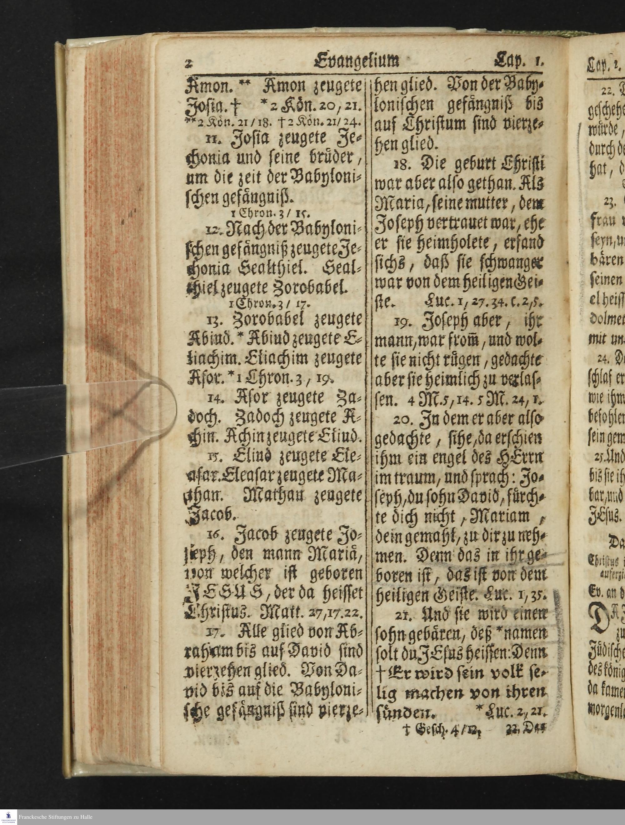 Das Neue Testament Unsers HErrn und Heylandes JEsu Christi / Verteutscht Von D. Martin Luthern, Mit Jedes Capituls kurtzen Summarien Und nöthigsten locis parallelis. Nebst einer Vorrede Hrn. Baron Carl Hildebrand von Canstein.