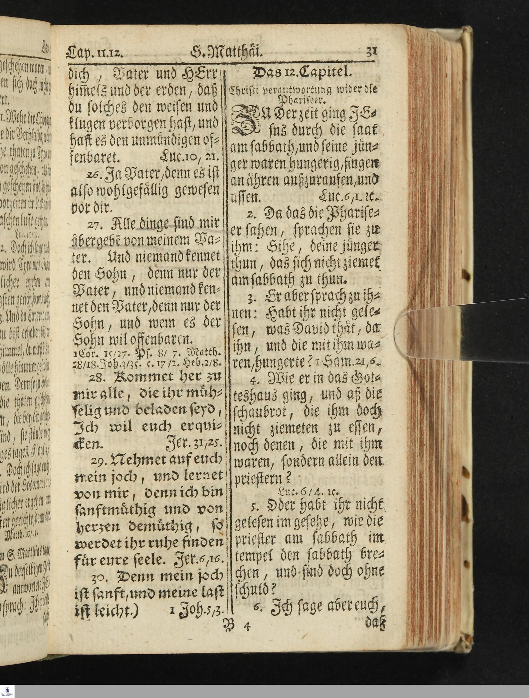 Das Neue Testament Unsers HErrn und Heylandes JEsu Christi / Verteutscht Von D. Martin Luthern, Mit Jedes Capituls kurtzen Summarien Und nöthigsten locis parallelis. Nebst einer Vorrede Hrn. Baron Carl Hildebrand von Canstein.