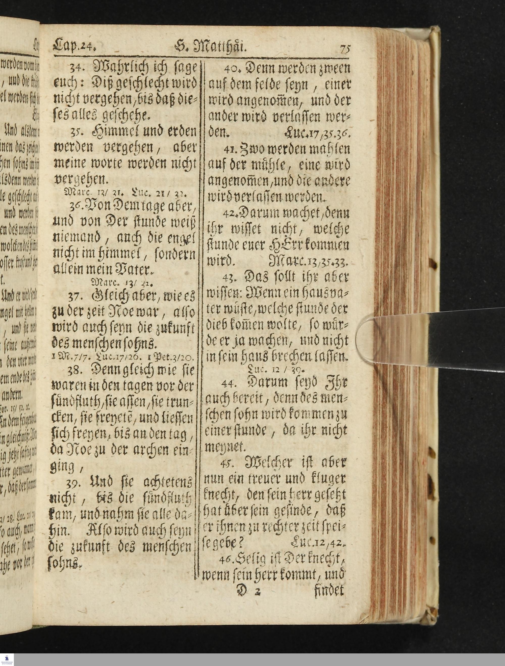 Das Neue Testament Unsers HErrn und Heylandes JEsu Christi / Verteutscht Von D. Martin Luthern, Mit Jedes Capituls kurtzen Summarien Und nöthigsten locis parallelis. Nebst einer Vorrede Hrn. Baron Carl Hildebrand von Canstein.