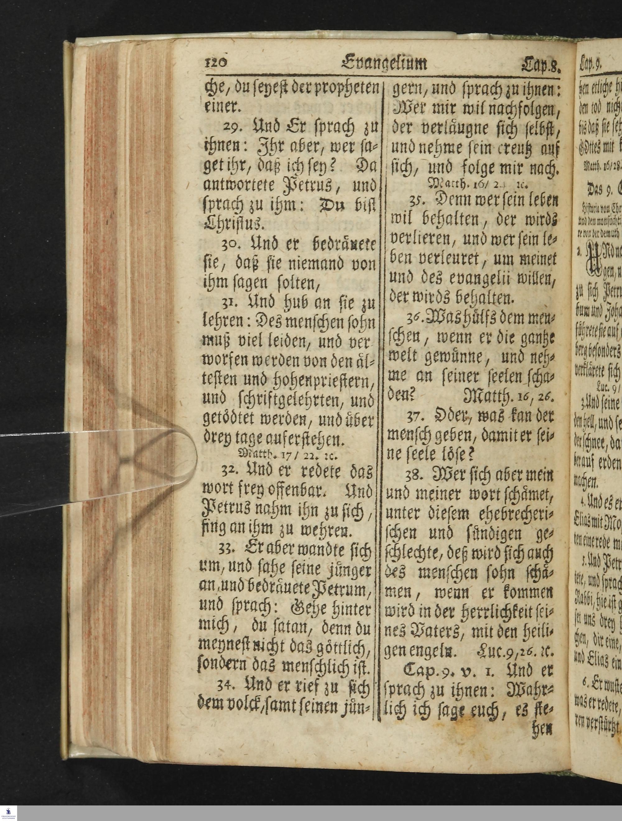 Das Neue Testament Unsers HErrn und Heylandes JEsu Christi / Verteutscht Von D. Martin Luthern, Mit Jedes Capituls kurtzen Summarien Und nöthigsten locis parallelis. Nebst einer Vorrede Hrn. Baron Carl Hildebrand von Canstein.
