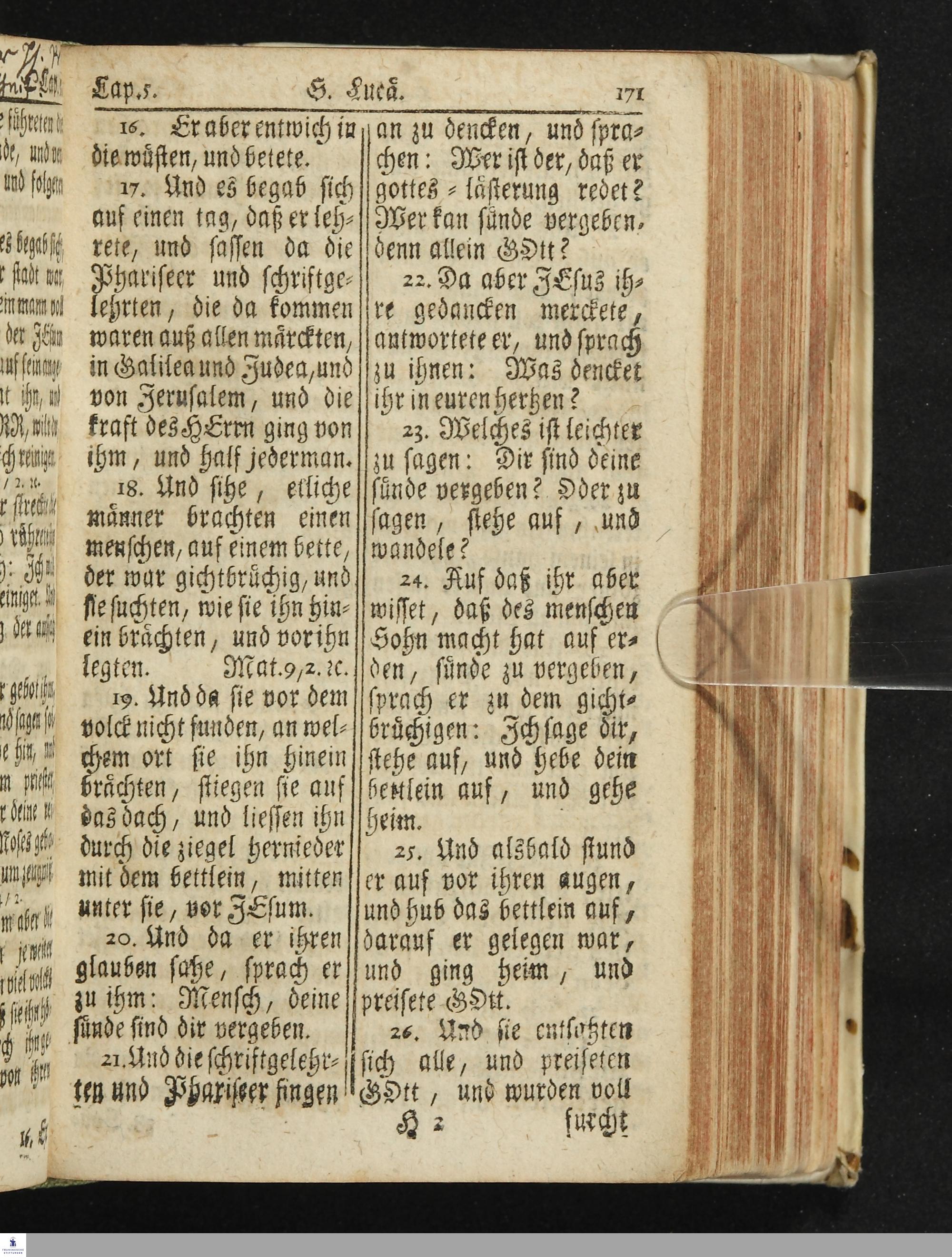 Das Neue Testament Unsers HErrn und Heylandes JEsu Christi / Verteutscht Von D. Martin Luthern, Mit Jedes Capituls kurtzen Summarien Und nöthigsten locis parallelis. Nebst einer Vorrede Hrn. Baron Carl Hildebrand von Canstein.