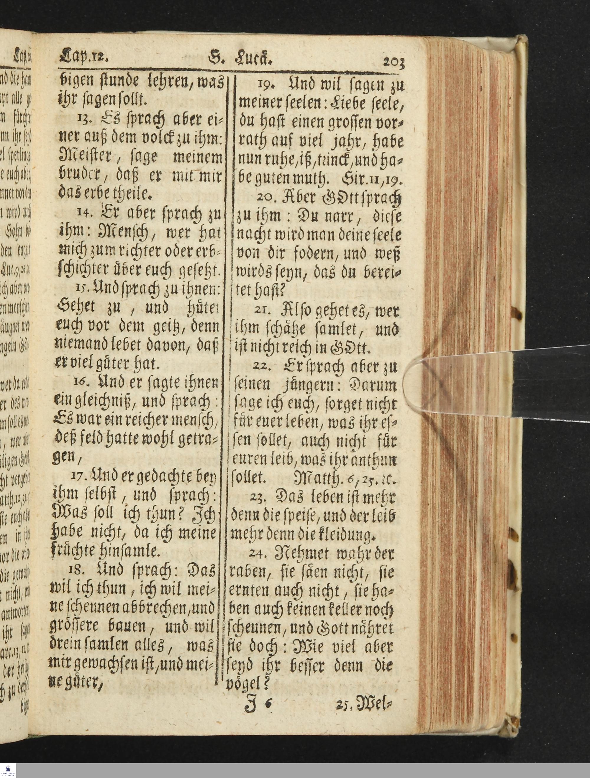 Das Neue Testament Unsers HErrn und Heylandes JEsu Christi / Verteutscht Von D. Martin Luthern, Mit Jedes Capituls kurtzen Summarien Und nöthigsten locis parallelis. Nebst einer Vorrede Hrn. Baron Carl Hildebrand von Canstein.