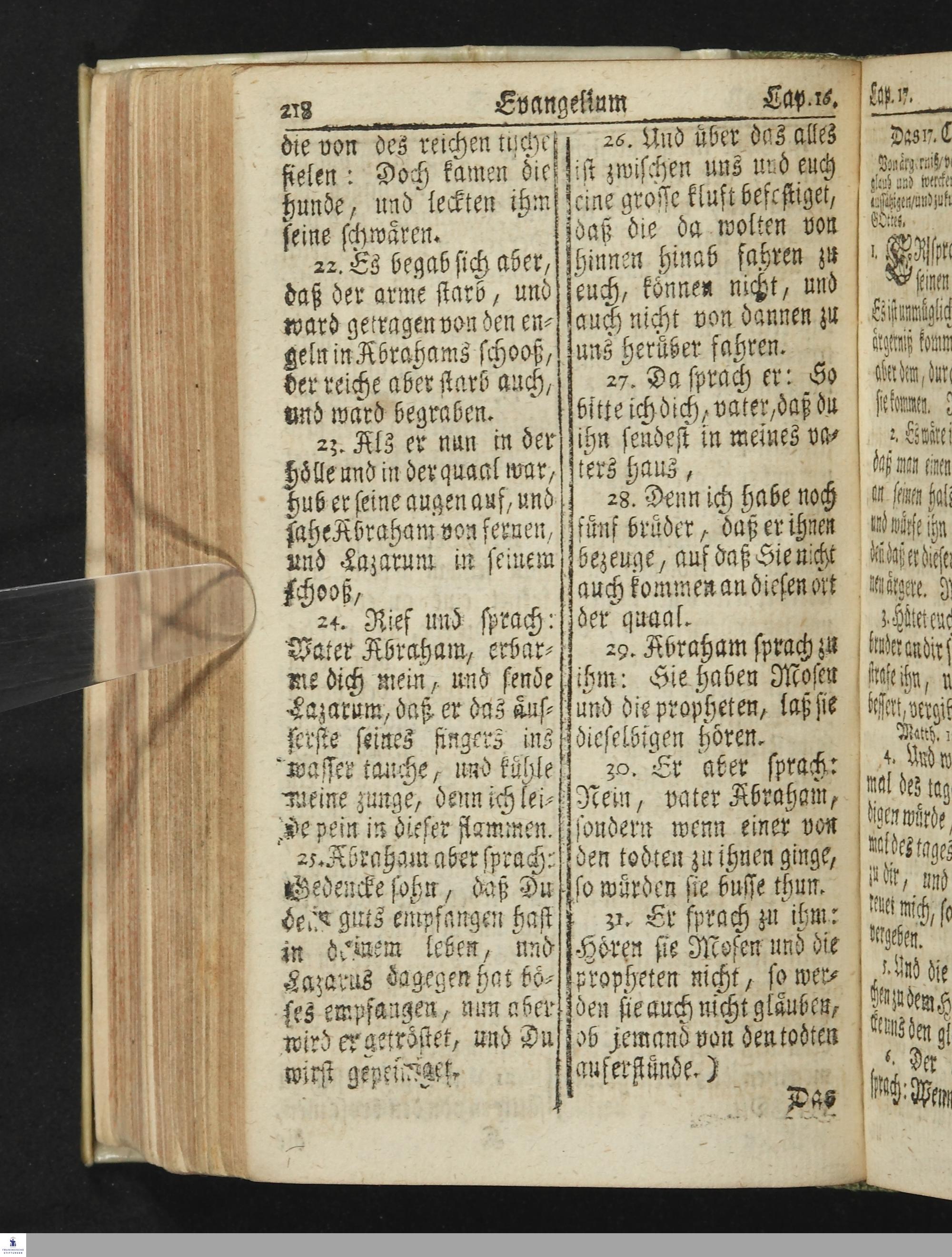 Das Neue Testament Unsers HErrn und Heylandes JEsu Christi / Verteutscht Von D. Martin Luthern, Mit Jedes Capituls kurtzen Summarien Und nöthigsten locis parallelis. Nebst einer Vorrede Hrn. Baron Carl Hildebrand von Canstein.
