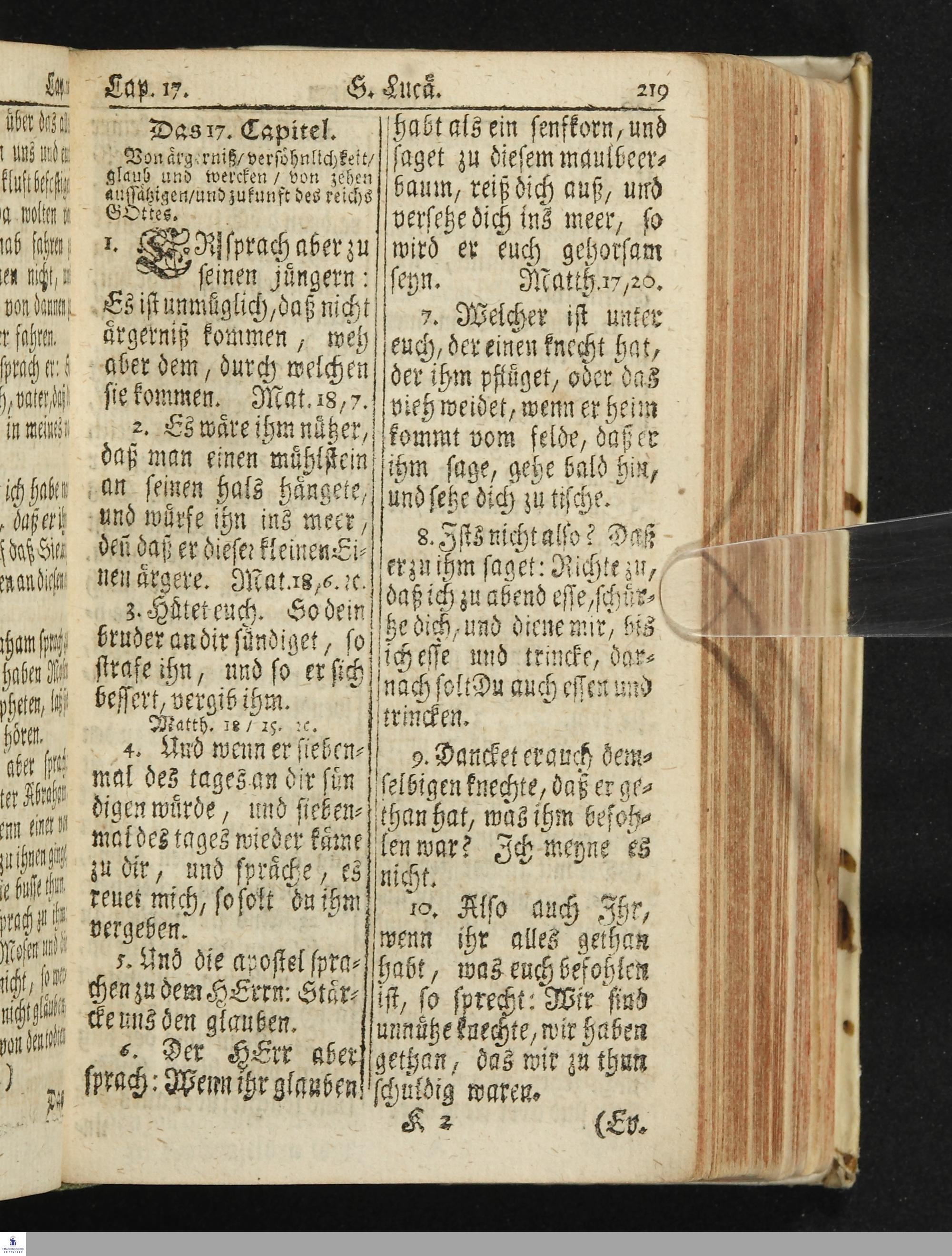 Das Neue Testament Unsers HErrn und Heylandes JEsu Christi / Verteutscht Von D. Martin Luthern, Mit Jedes Capituls kurtzen Summarien Und nöthigsten locis parallelis. Nebst einer Vorrede Hrn. Baron Carl Hildebrand von Canstein.