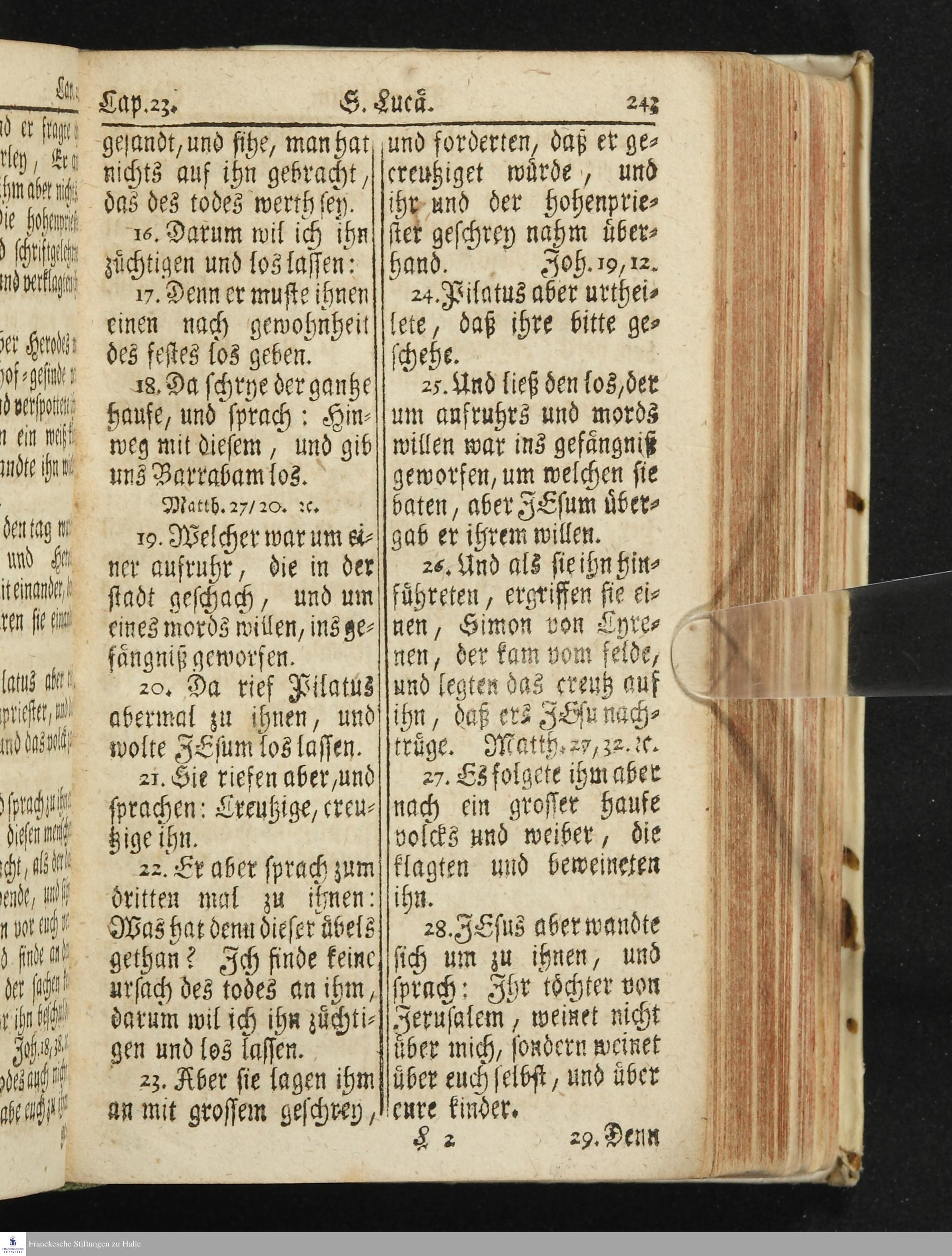 Das Neue Testament Unsers HErrn und Heylandes JEsu Christi / Verteutscht Von D. Martin Luthern, Mit Jedes Capituls kurtzen Summarien Und nöthigsten locis parallelis. Nebst einer Vorrede Hrn. Baron Carl Hildebrand von Canstein.
