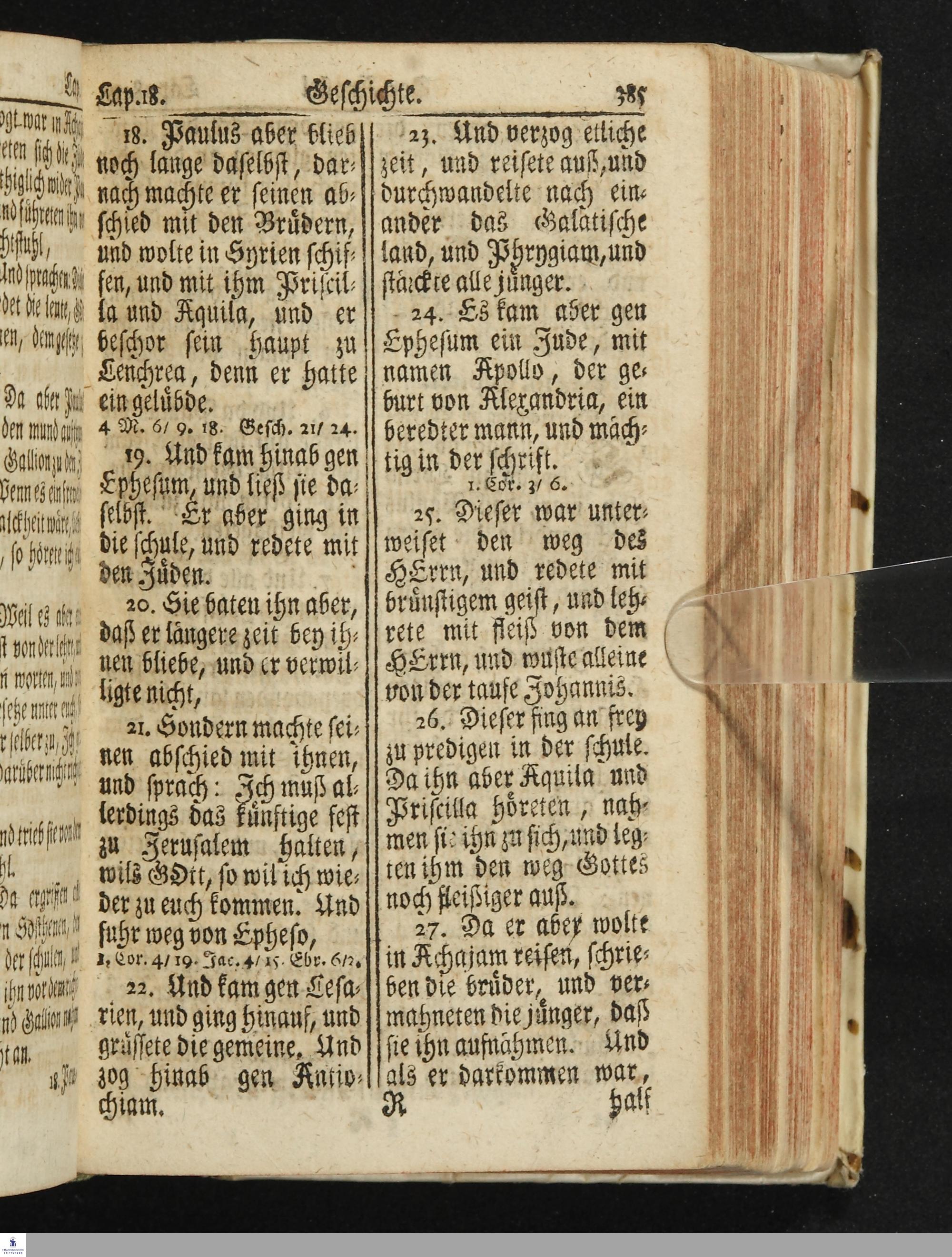 Das Neue Testament Unsers HErrn und Heylandes JEsu Christi / Verteutscht Von D. Martin Luthern, Mit Jedes Capituls kurtzen Summarien Und nöthigsten locis parallelis. Nebst einer Vorrede Hrn. Baron Carl Hildebrand von Canstein.