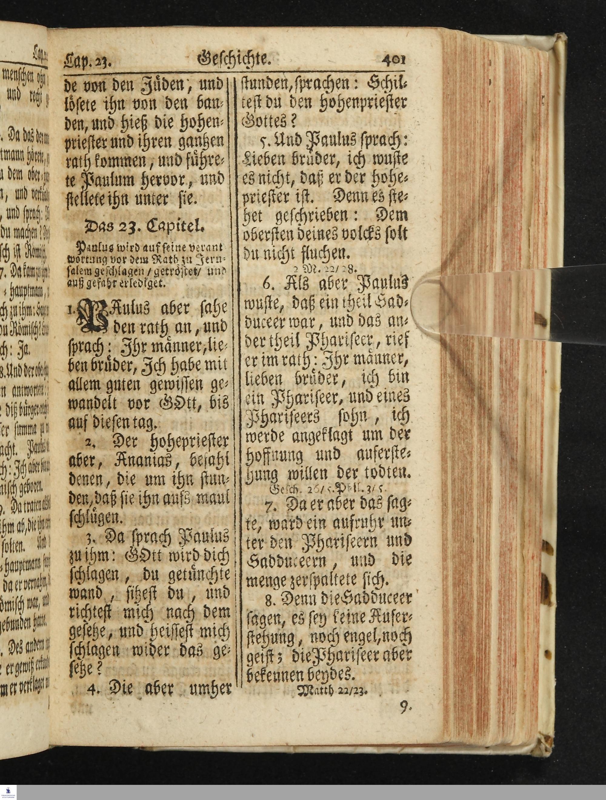 Das Neue Testament Unsers HErrn und Heylandes JEsu Christi / Verteutscht Von D. Martin Luthern, Mit Jedes Capituls kurtzen Summarien Und nöthigsten locis parallelis. Nebst einer Vorrede Hrn. Baron Carl Hildebrand von Canstein.