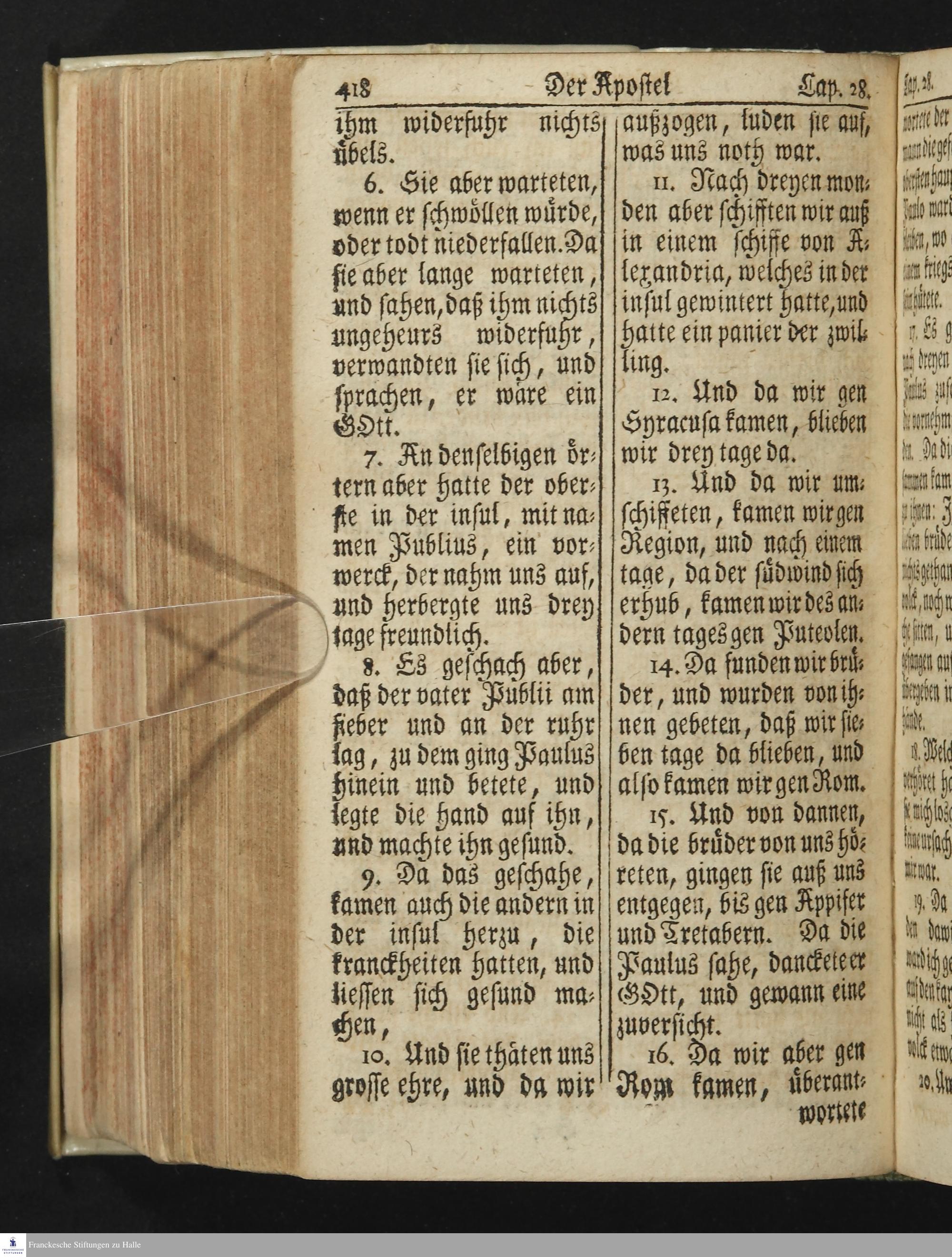 Das Neue Testament Unsers HErrn und Heylandes JEsu Christi / Verteutscht Von D. Martin Luthern, Mit Jedes Capituls kurtzen Summarien Und nöthigsten locis parallelis. Nebst einer Vorrede Hrn. Baron Carl Hildebrand von Canstein.