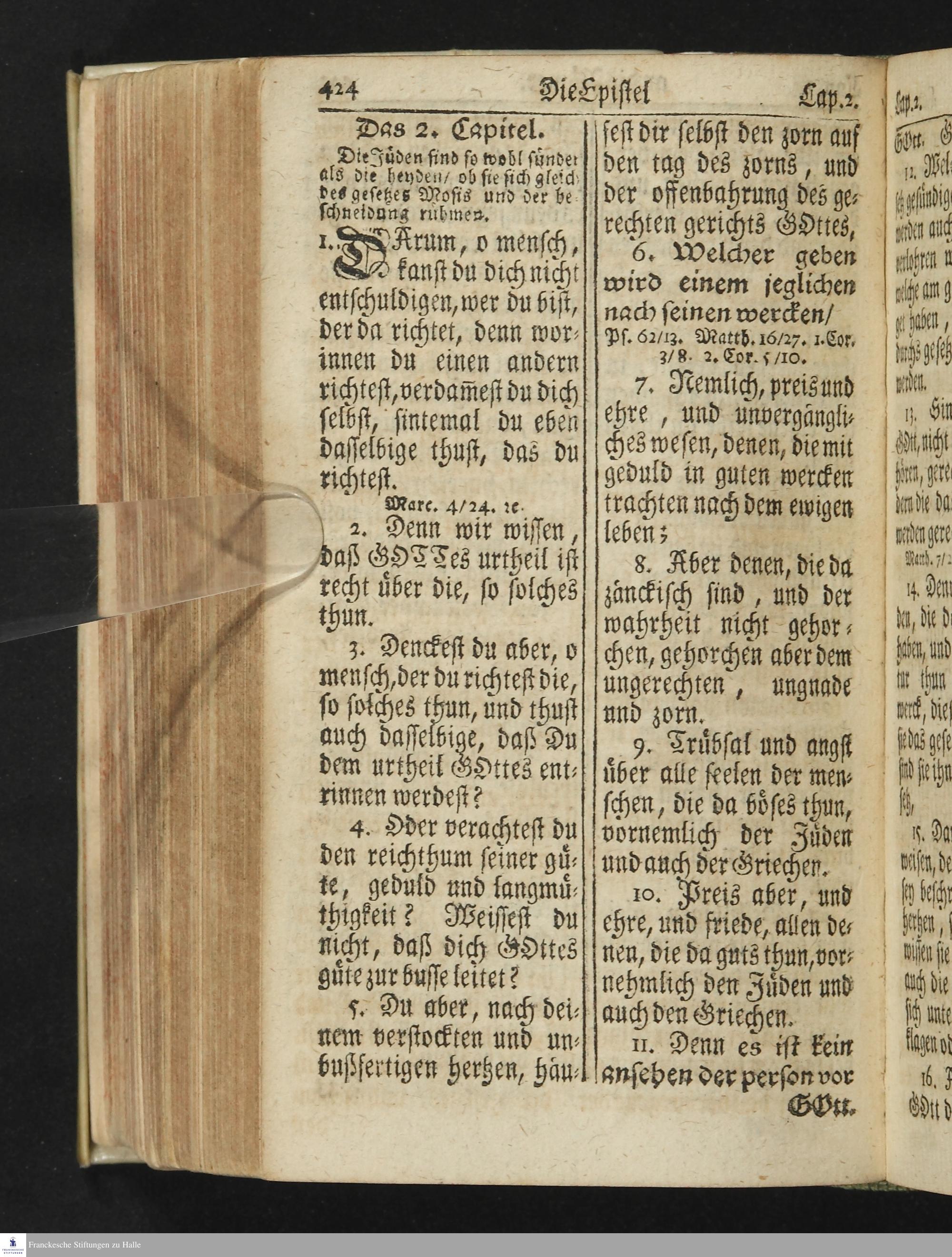 Das Neue Testament Unsers HErrn und Heylandes JEsu Christi / Verteutscht Von D. Martin Luthern, Mit Jedes Capituls kurtzen Summarien Und nöthigsten locis parallelis. Nebst einer Vorrede Hrn. Baron Carl Hildebrand von Canstein.