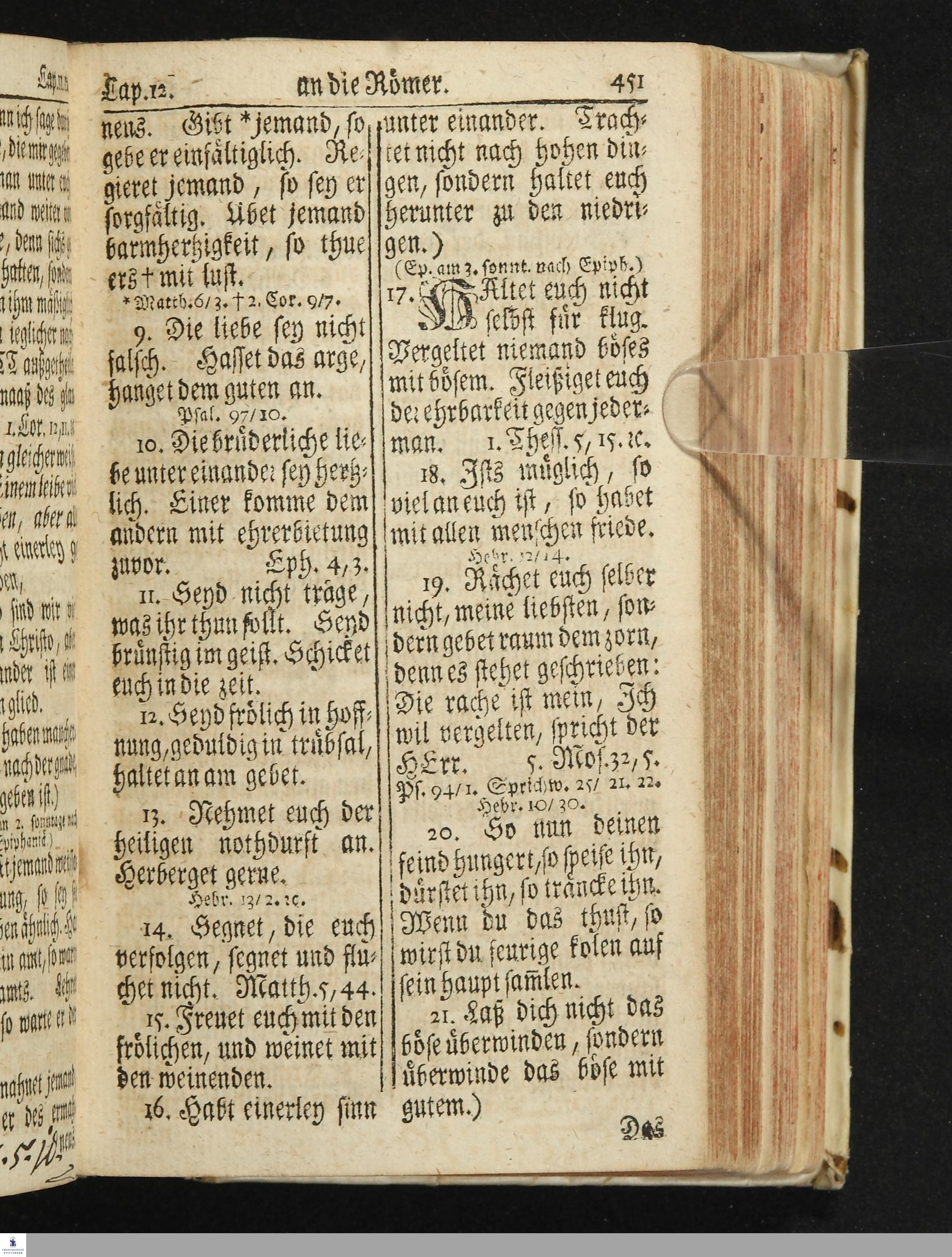 Das Neue Testament Unsers HErrn und Heylandes JEsu Christi / Verteutscht Von D. Martin Luthern, Mit Jedes Capituls kurtzen Summarien Und nöthigsten locis parallelis. Nebst einer Vorrede Hrn. Baron Carl Hildebrand von Canstein.