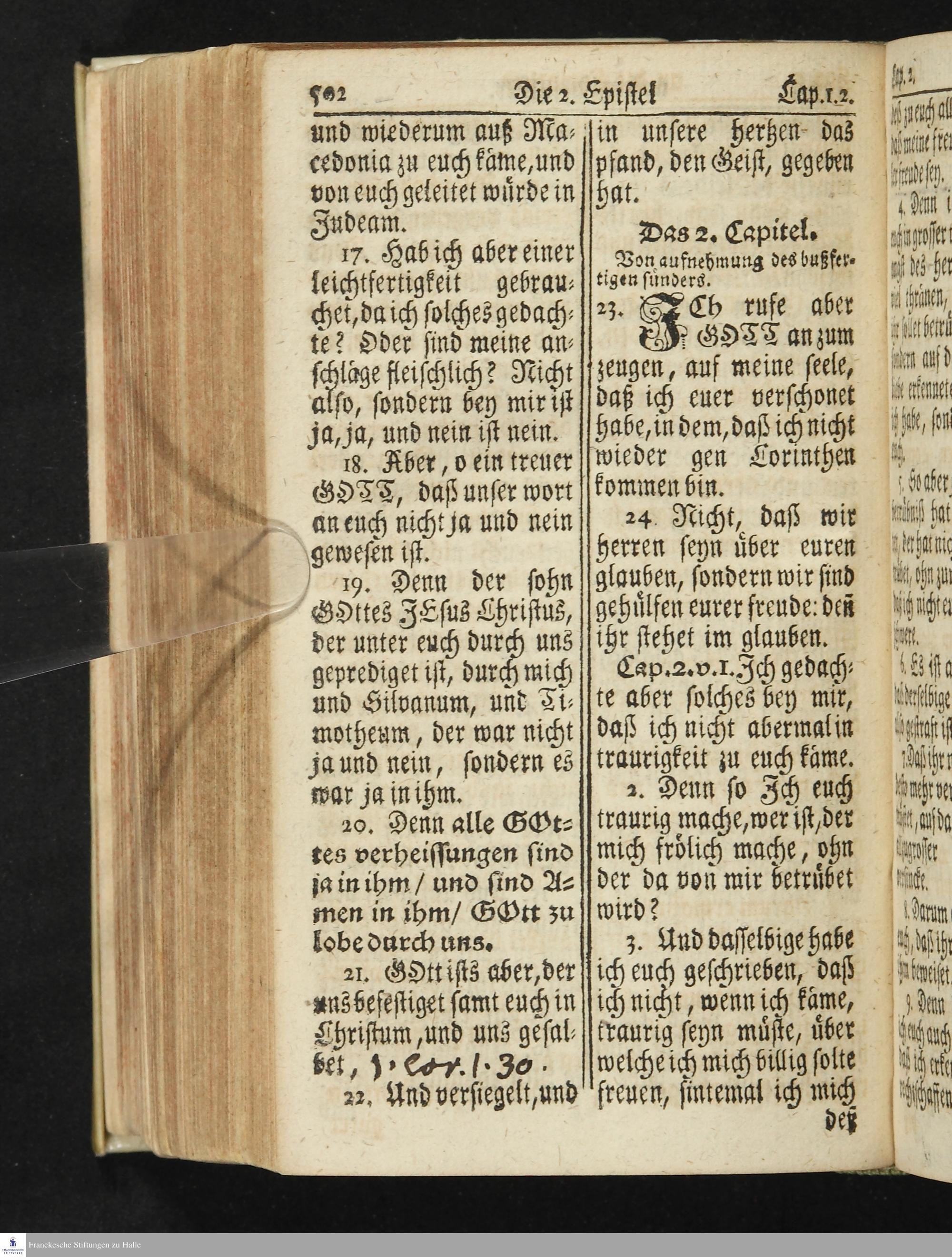 Das Neue Testament Unsers HErrn und Heylandes JEsu Christi / Verteutscht Von D. Martin Luthern, Mit Jedes Capituls kurtzen Summarien Und nöthigsten locis parallelis. Nebst einer Vorrede Hrn. Baron Carl Hildebrand von Canstein.