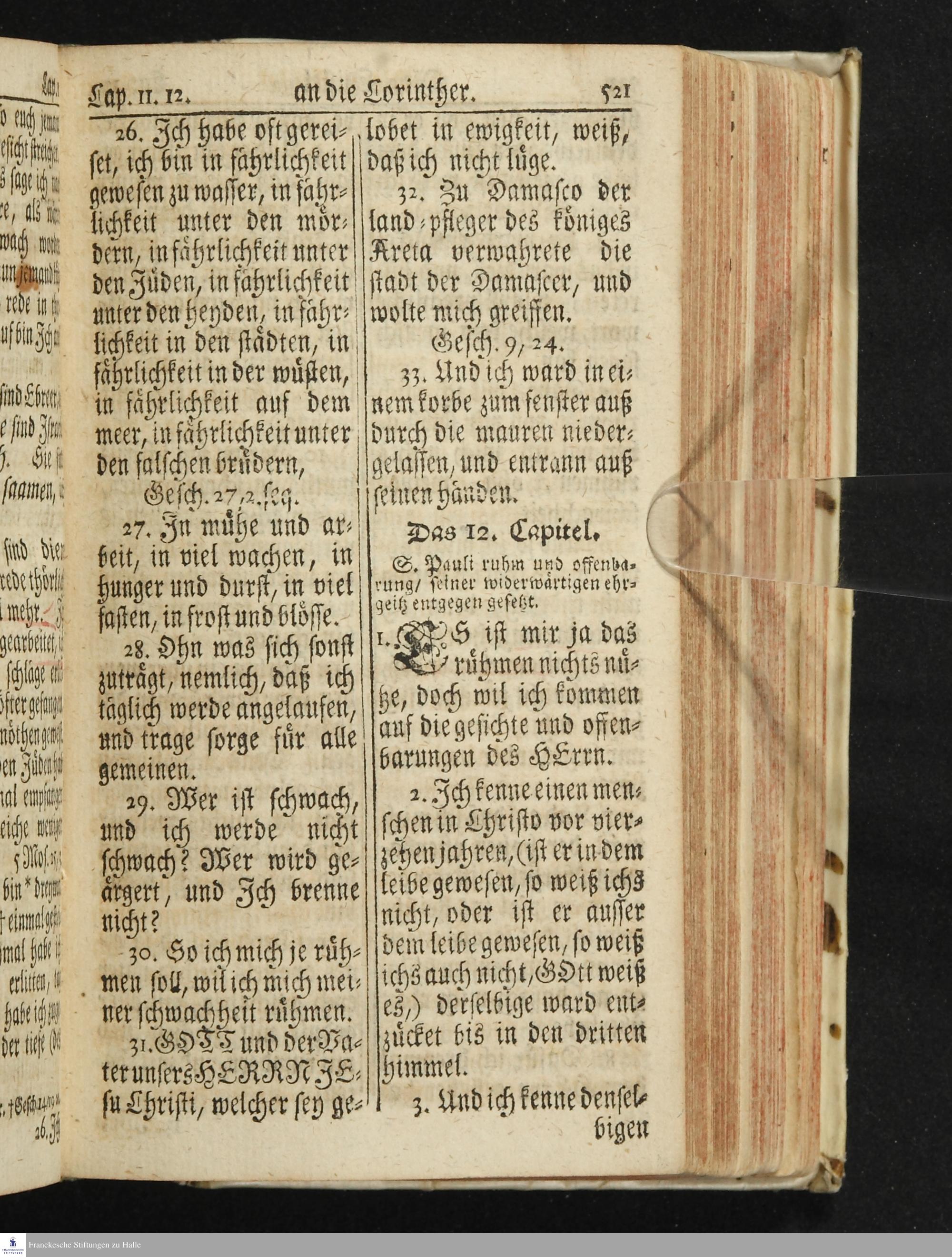Das Neue Testament Unsers HErrn und Heylandes JEsu Christi / Verteutscht Von D. Martin Luthern, Mit Jedes Capituls kurtzen Summarien Und nöthigsten locis parallelis. Nebst einer Vorrede Hrn. Baron Carl Hildebrand von Canstein.