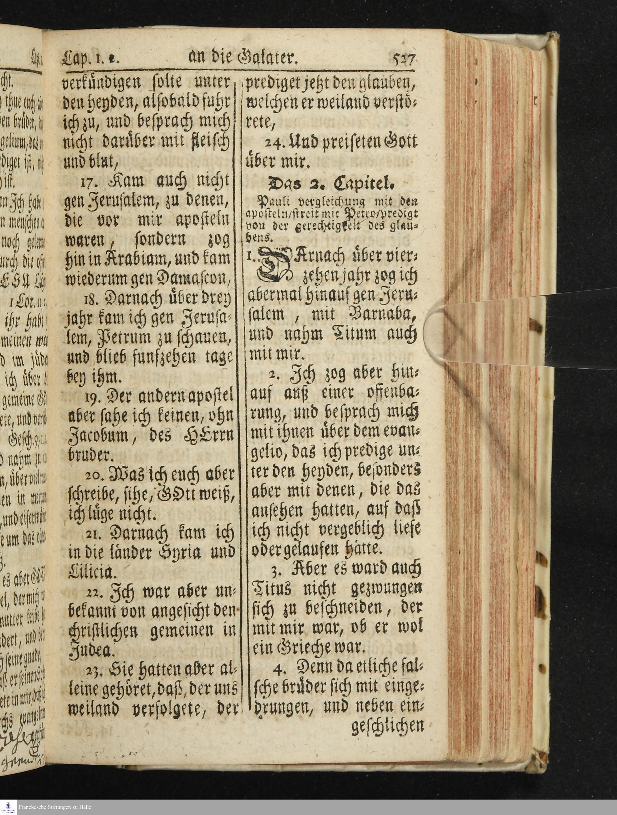 Das Neue Testament Unsers HErrn und Heylandes JEsu Christi / Verteutscht Von D. Martin Luthern, Mit Jedes Capituls kurtzen Summarien Und nöthigsten locis parallelis. Nebst einer Vorrede Hrn. Baron Carl Hildebrand von Canstein.