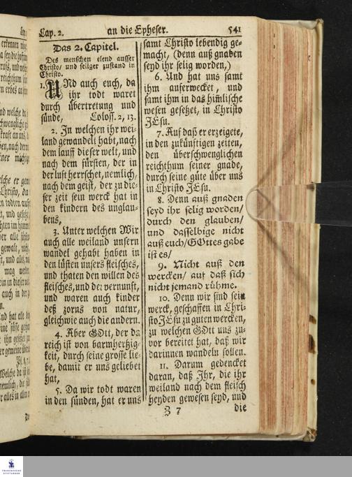 Das Neue Testament Unsers HErrn und Heylandes JEsu Christi / Verteutscht Von D. Martin Luthern, Mit Jedes Capituls kurtzen Summarien Und nöthigsten locis parallelis. Nebst einer Vorrede Hrn. Baron Carl Hildebrand von Canstein.