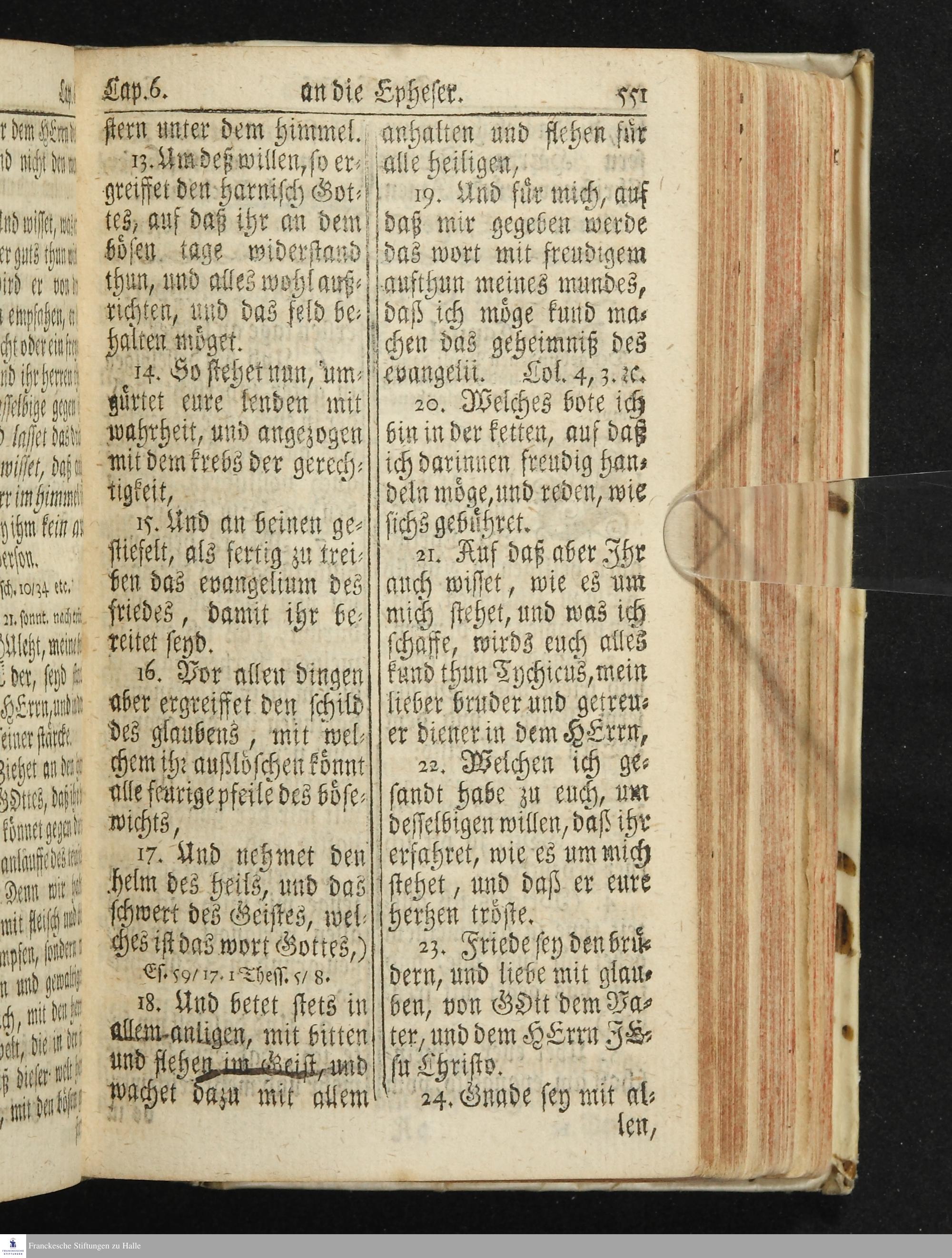 Das Neue Testament Unsers HErrn und Heylandes JEsu Christi / Verteutscht Von D. Martin Luthern, Mit Jedes Capituls kurtzen Summarien Und nöthigsten locis parallelis. Nebst einer Vorrede Hrn. Baron Carl Hildebrand von Canstein.