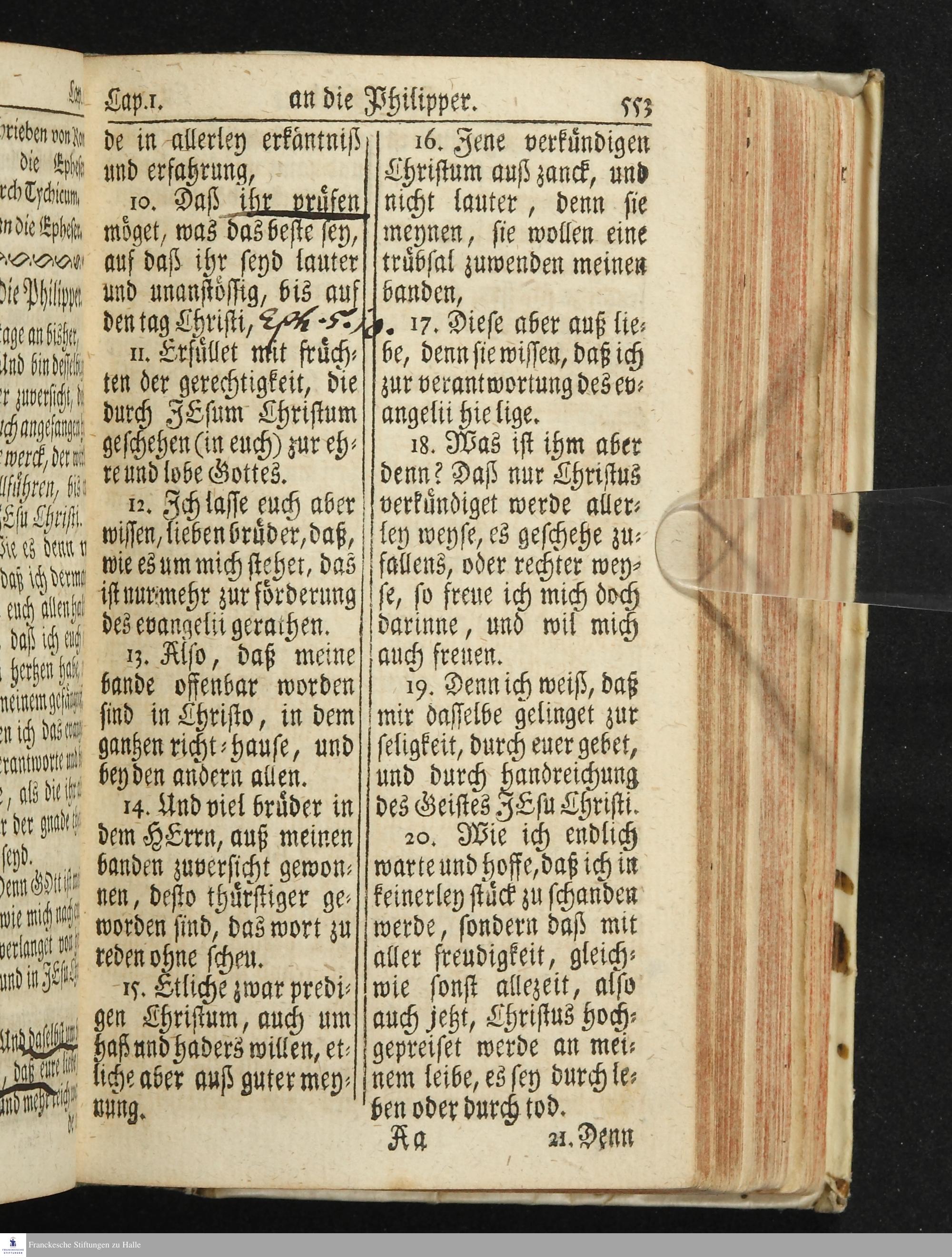 Das Neue Testament Unsers HErrn und Heylandes JEsu Christi / Verteutscht Von D. Martin Luthern, Mit Jedes Capituls kurtzen Summarien Und nöthigsten locis parallelis. Nebst einer Vorrede Hrn. Baron Carl Hildebrand von Canstein.