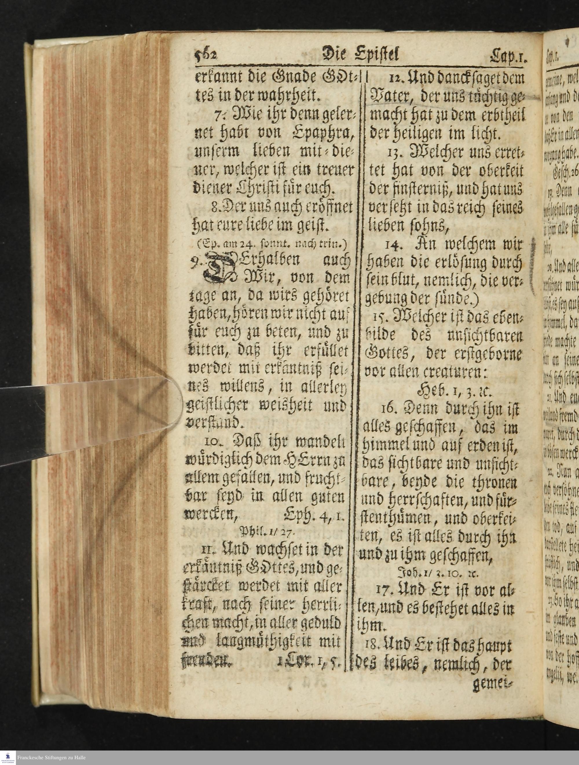 Das Neue Testament Unsers HErrn und Heylandes JEsu Christi / Verteutscht Von D. Martin Luthern, Mit Jedes Capituls kurtzen Summarien Und nöthigsten locis parallelis. Nebst einer Vorrede Hrn. Baron Carl Hildebrand von Canstein.