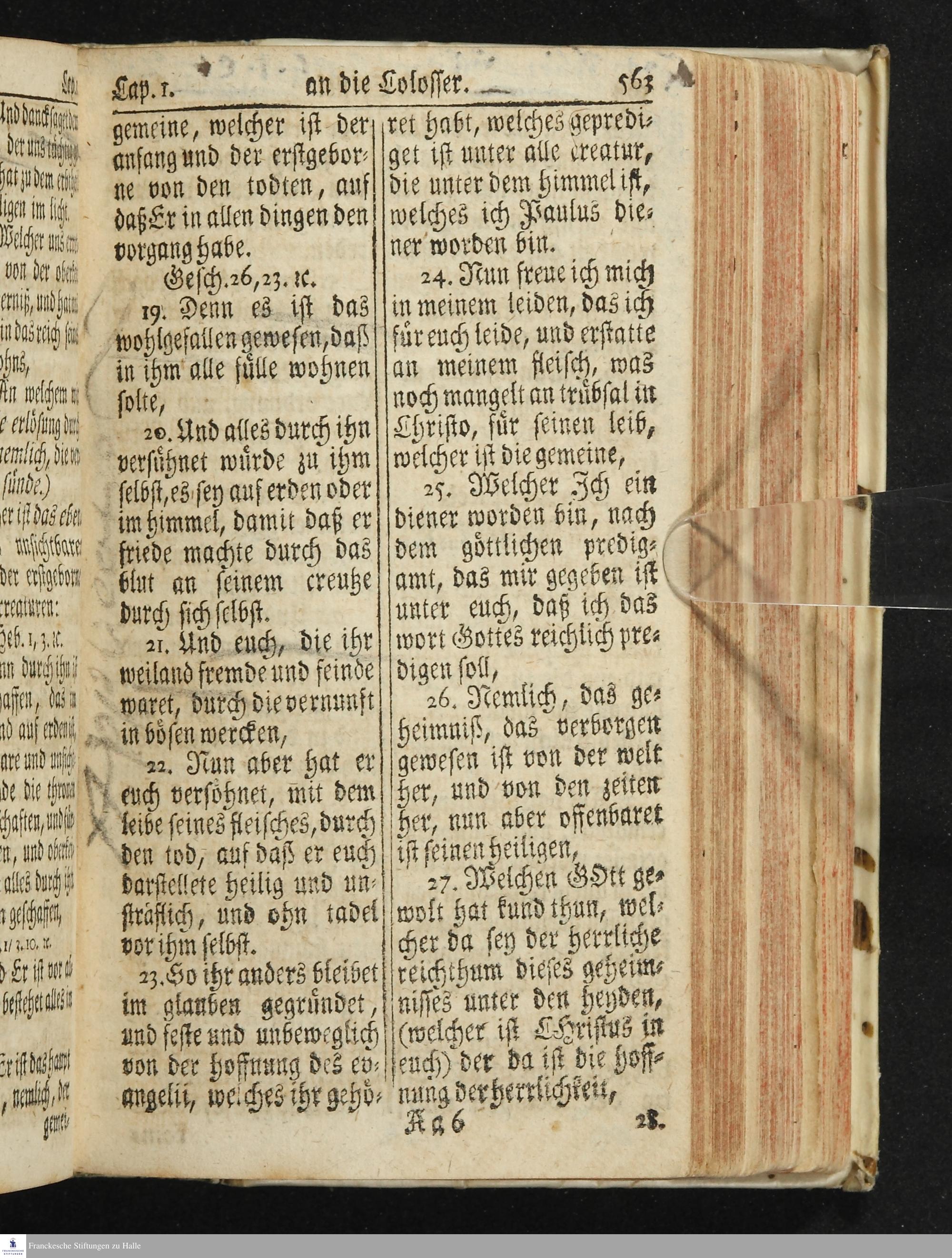 Das Neue Testament Unsers HErrn und Heylandes JEsu Christi / Verteutscht Von D. Martin Luthern, Mit Jedes Capituls kurtzen Summarien Und nöthigsten locis parallelis. Nebst einer Vorrede Hrn. Baron Carl Hildebrand von Canstein.