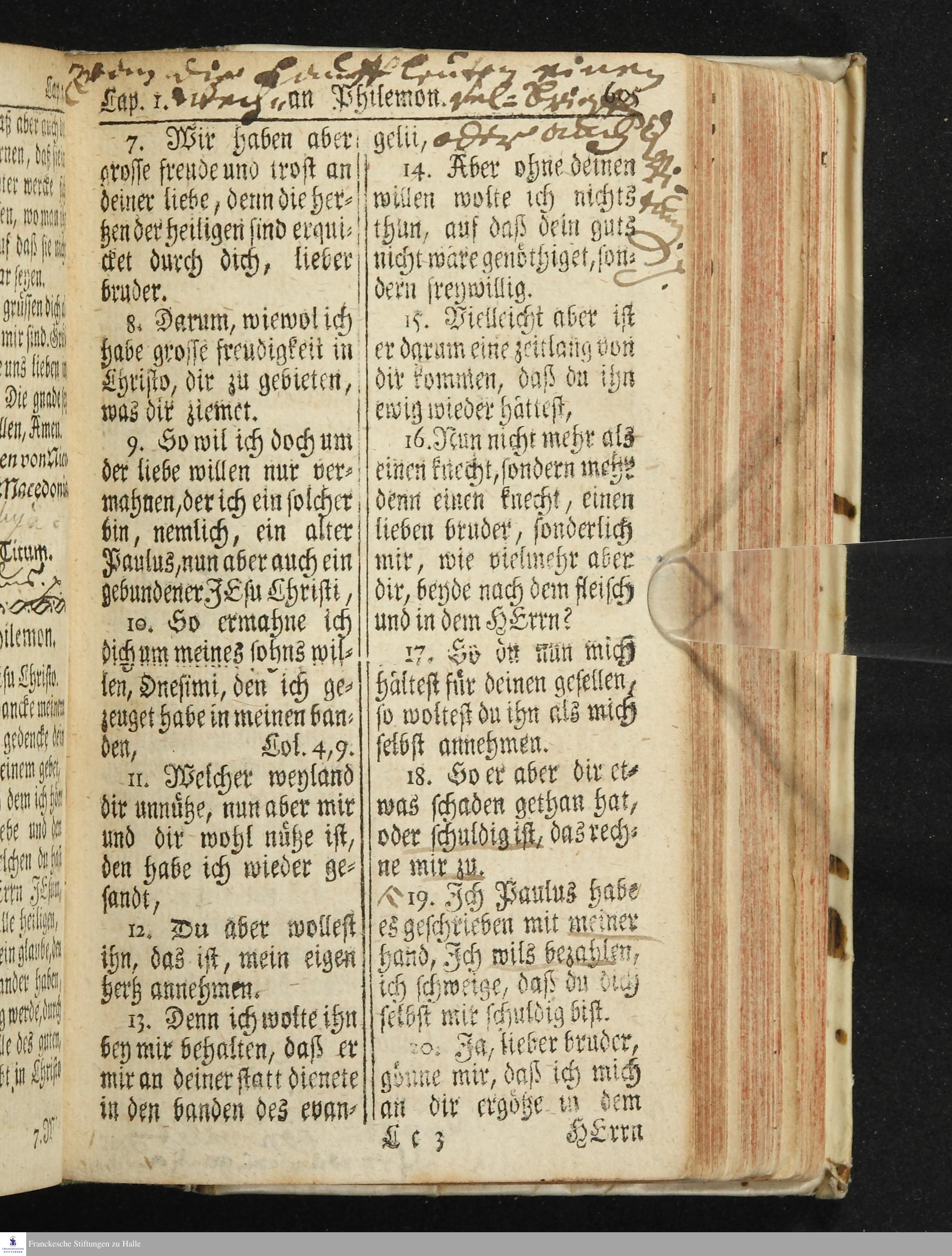 Das Neue Testament Unsers HErrn und Heylandes JEsu Christi / Verteutscht Von D. Martin Luthern, Mit Jedes Capituls kurtzen Summarien Und nöthigsten locis parallelis. Nebst einer Vorrede Hrn. Baron Carl Hildebrand von Canstein.