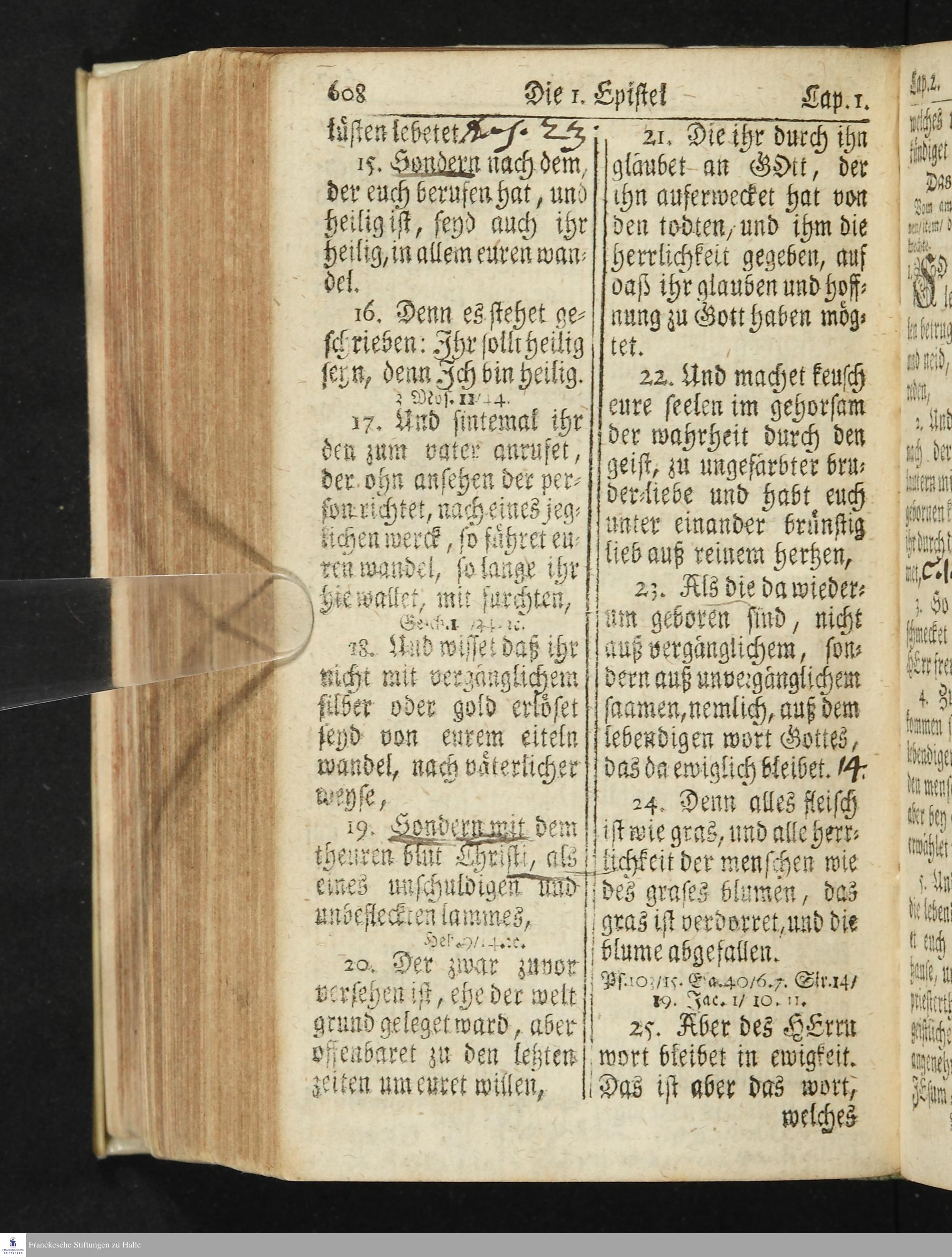 Das Neue Testament Unsers HErrn und Heylandes JEsu Christi / Verteutscht Von D. Martin Luthern, Mit Jedes Capituls kurtzen Summarien Und nöthigsten locis parallelis. Nebst einer Vorrede Hrn. Baron Carl Hildebrand von Canstein.