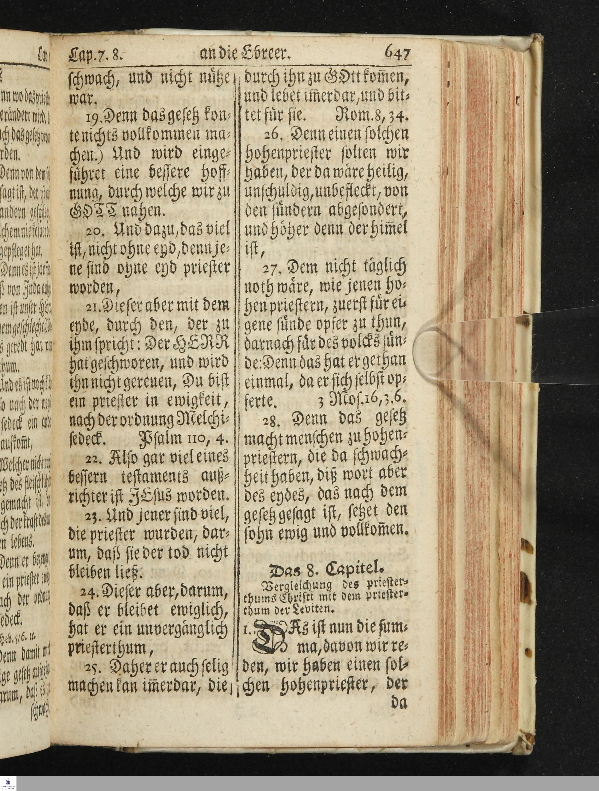 Das Neue Testament Unsers HErrn und Heylandes JEsu Christi / Verteutscht Von D. Martin Luthern, Mit Jedes Capituls kurtzen Summarien Und nöthigsten locis parallelis. Nebst einer Vorrede Hrn. Baron Carl Hildebrand von Canstein.