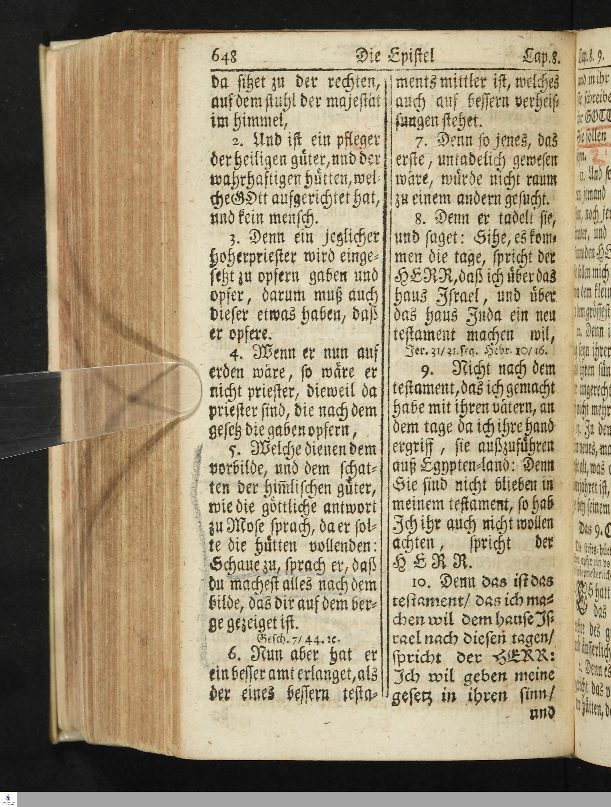 Das Neue Testament Unsers HErrn und Heylandes JEsu Christi / Verteutscht Von D. Martin Luthern, Mit Jedes Capituls kurtzen Summarien Und nöthigsten locis parallelis. Nebst einer Vorrede Hrn. Baron Carl Hildebrand von Canstein.