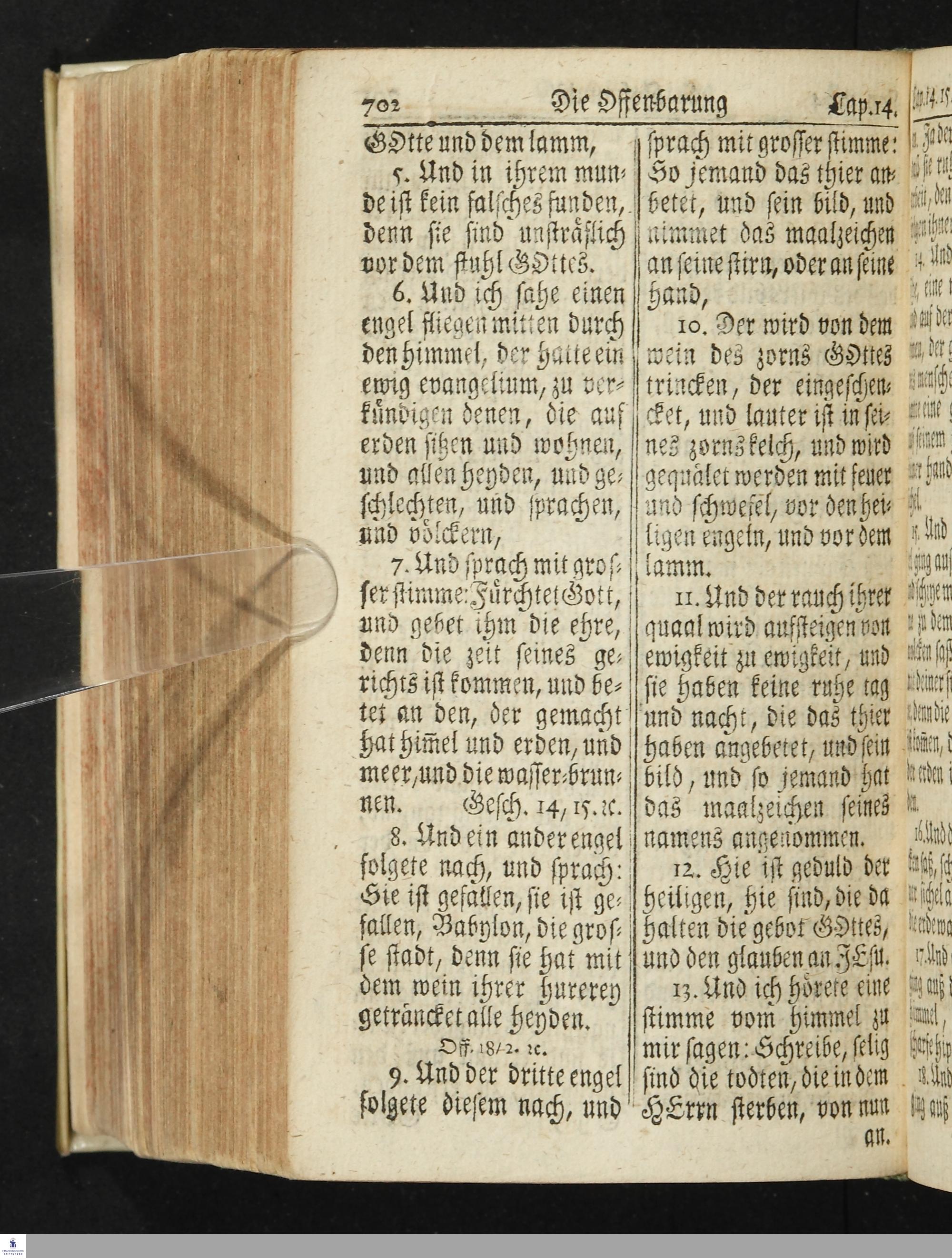 Das Neue Testament Unsers HErrn und Heylandes JEsu Christi / Verteutscht Von D. Martin Luthern, Mit Jedes Capituls kurtzen Summarien Und nöthigsten locis parallelis. Nebst einer Vorrede Hrn. Baron Carl Hildebrand von Canstein.