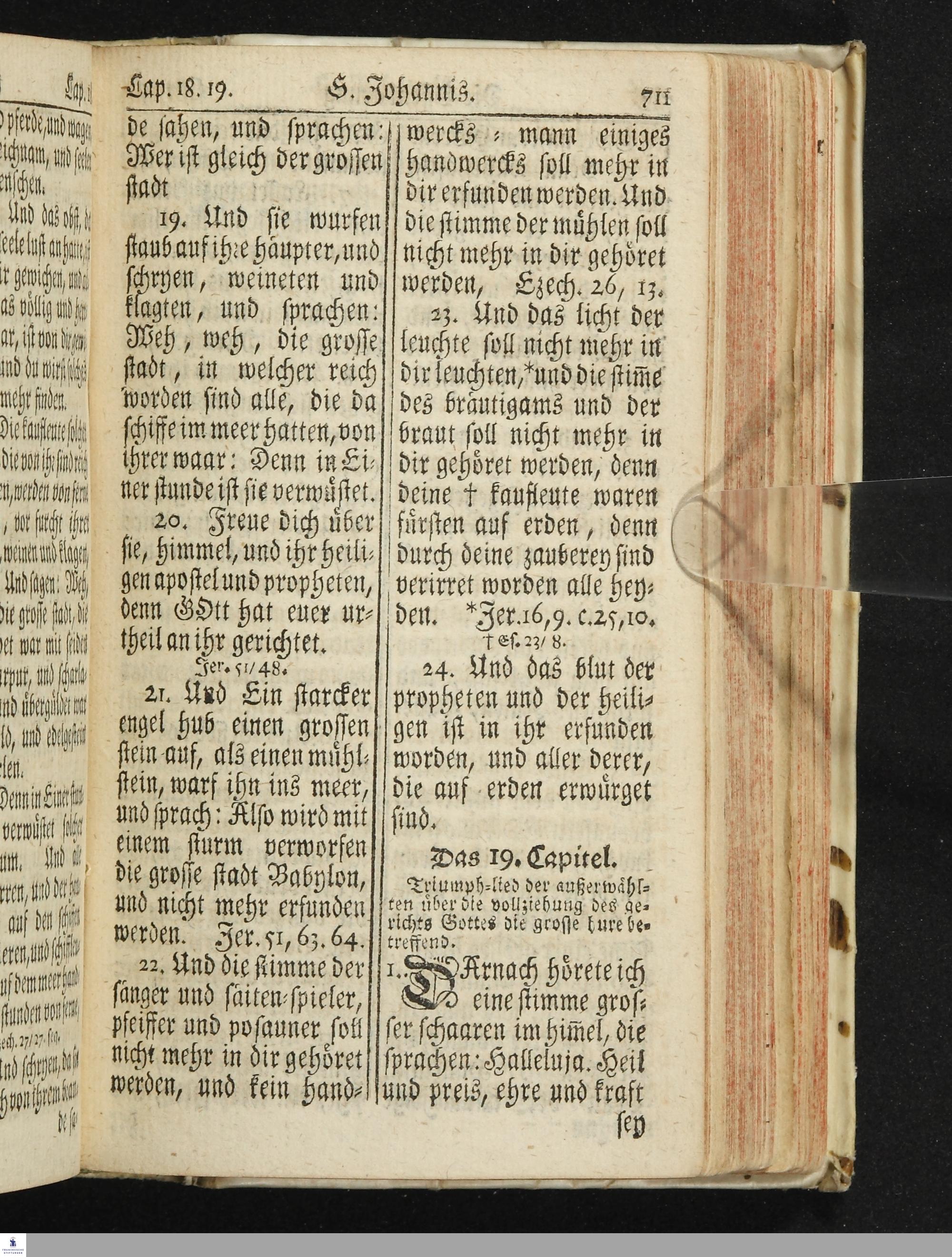 Das Neue Testament Unsers HErrn und Heylandes JEsu Christi / Verteutscht Von D. Martin Luthern, Mit Jedes Capituls kurtzen Summarien Und nöthigsten locis parallelis. Nebst einer Vorrede Hrn. Baron Carl Hildebrand von Canstein.