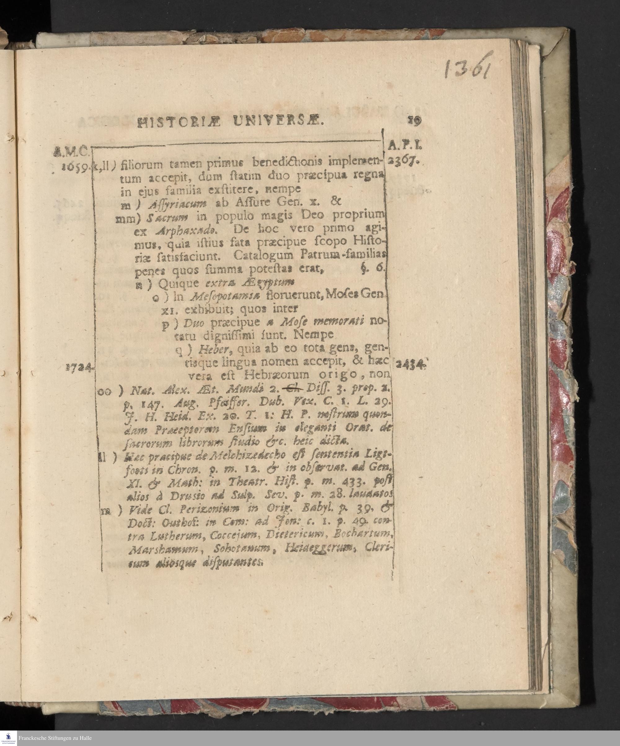 [Specimen Primum Historiae Analyticae, exhibens Res In Republica Hebraeorum A Condito Mundo usque ad Christum natum gestae]