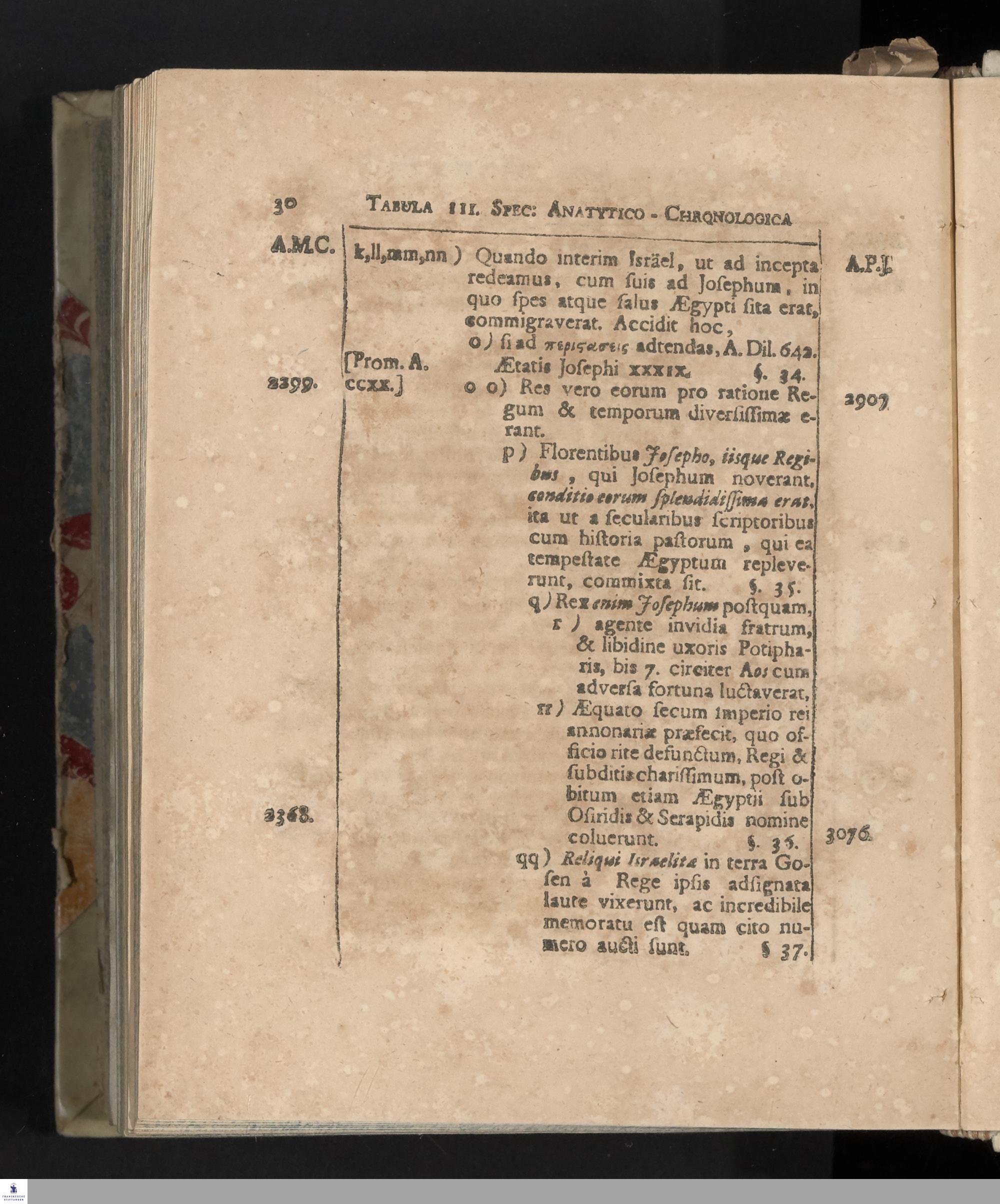 [Specimen Primum Historiae Analyticae, exhibens Res In Republica Hebraeorum A Condito Mundo usque ad Christum natum gestae]