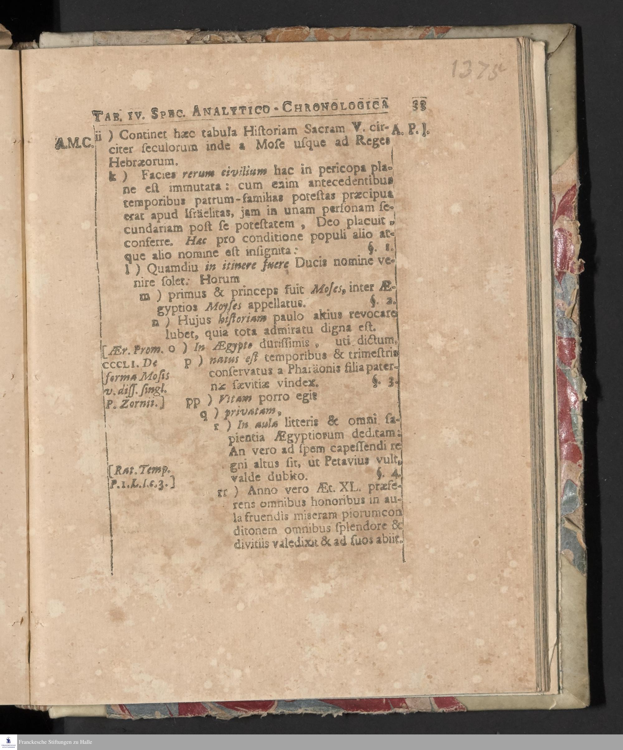 [Specimen Primum Historiae Analyticae, exhibens Res In Republica Hebraeorum A Condito Mundo usque ad Christum natum gestae]