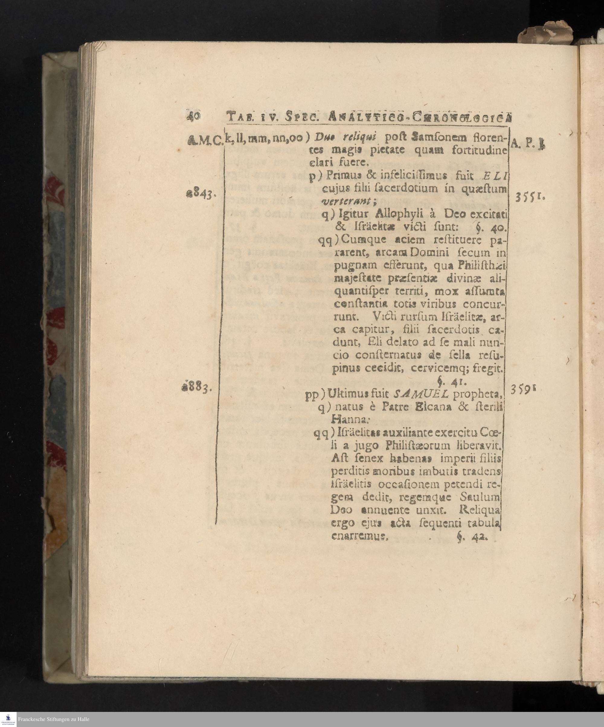 [Specimen Primum Historiae Analyticae, exhibens Res In Republica Hebraeorum A Condito Mundo usque ad Christum natum gestae]
