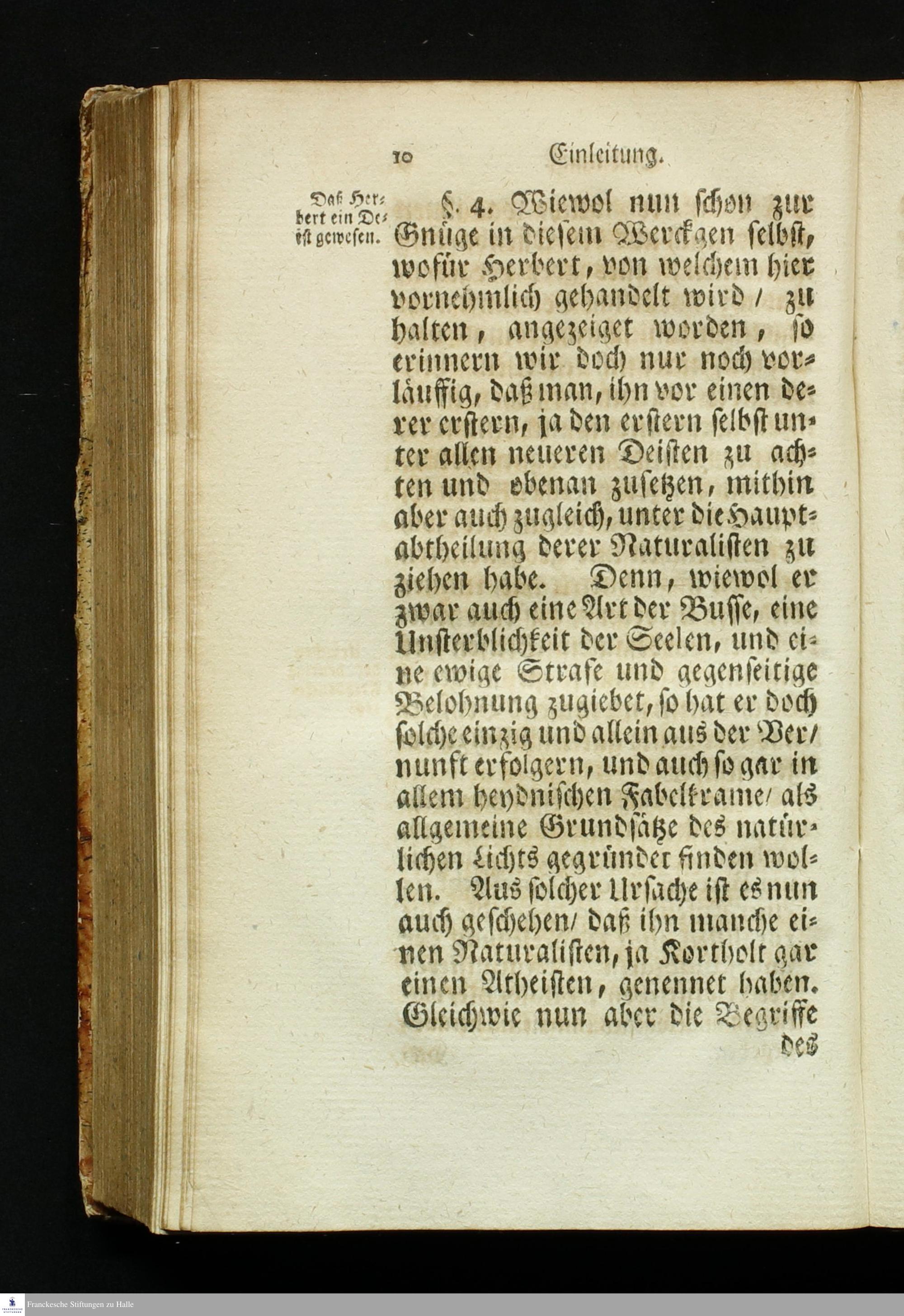 Worinne besonders Von dem Leben, Schrifften, Nachfolgern und Gegnern des berühmten und gelehrten Englischen Lords Edoard Herbert de Cherbury [et]c. als deren Vorgängers und Anführers, gehandelt wird, Aus seinen eignen Schrifften und vielen besondern Nachrichten zusammen getragen und mit nöthigen Anmerckungen erläutert / von Christoph Gottlob Grundig, A.M.V.D.M.