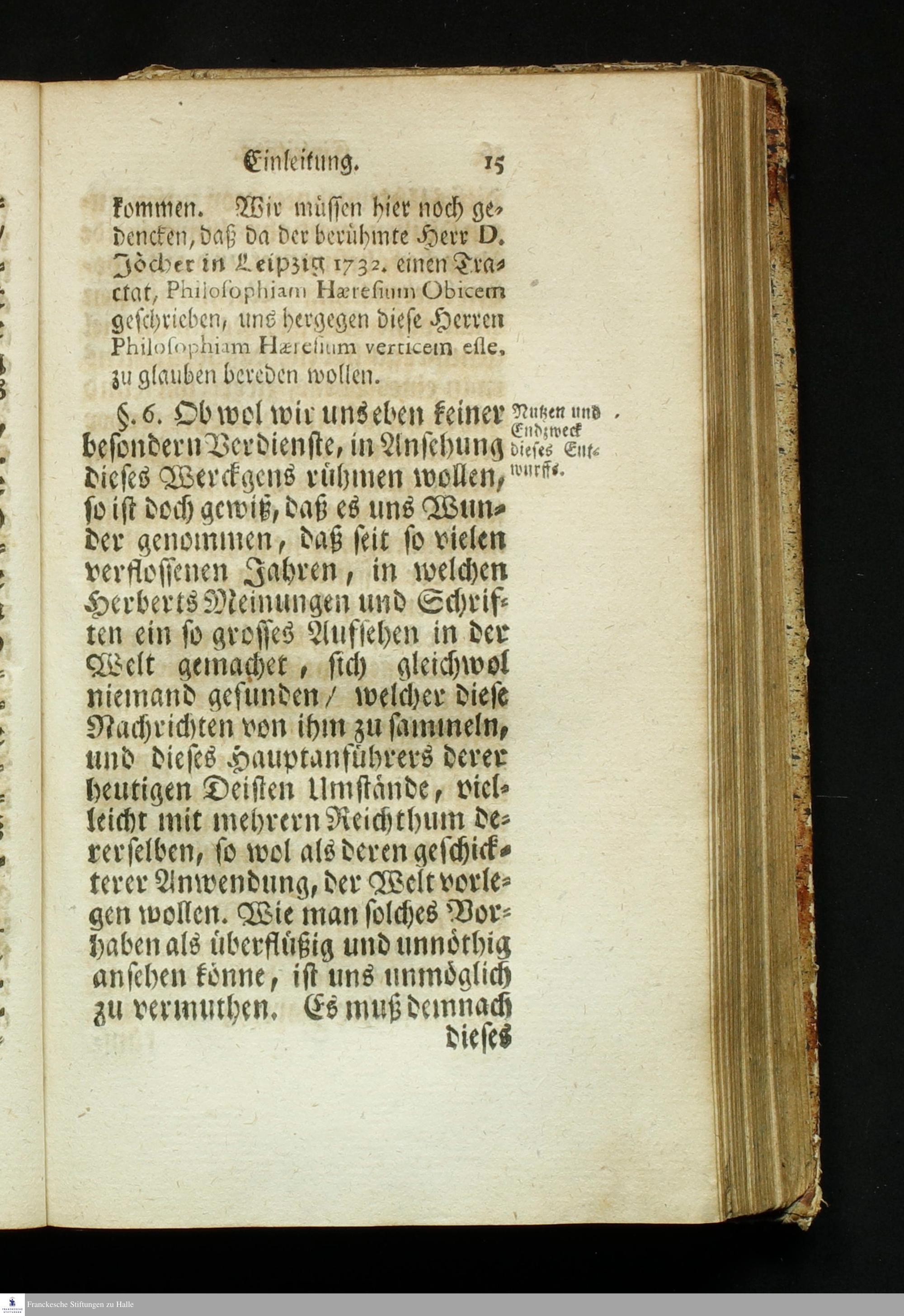 Worinne besonders Von dem Leben, Schrifften, Nachfolgern und Gegnern des berühmten und gelehrten Englischen Lords Edoard Herbert de Cherbury [et]c. als deren Vorgängers und Anführers, gehandelt wird, Aus seinen eignen Schrifften und vielen besondern Nachrichten zusammen getragen und mit nöthigen Anmerckungen erläutert / von Christoph Gottlob Grundig, A.M.V.D.M.