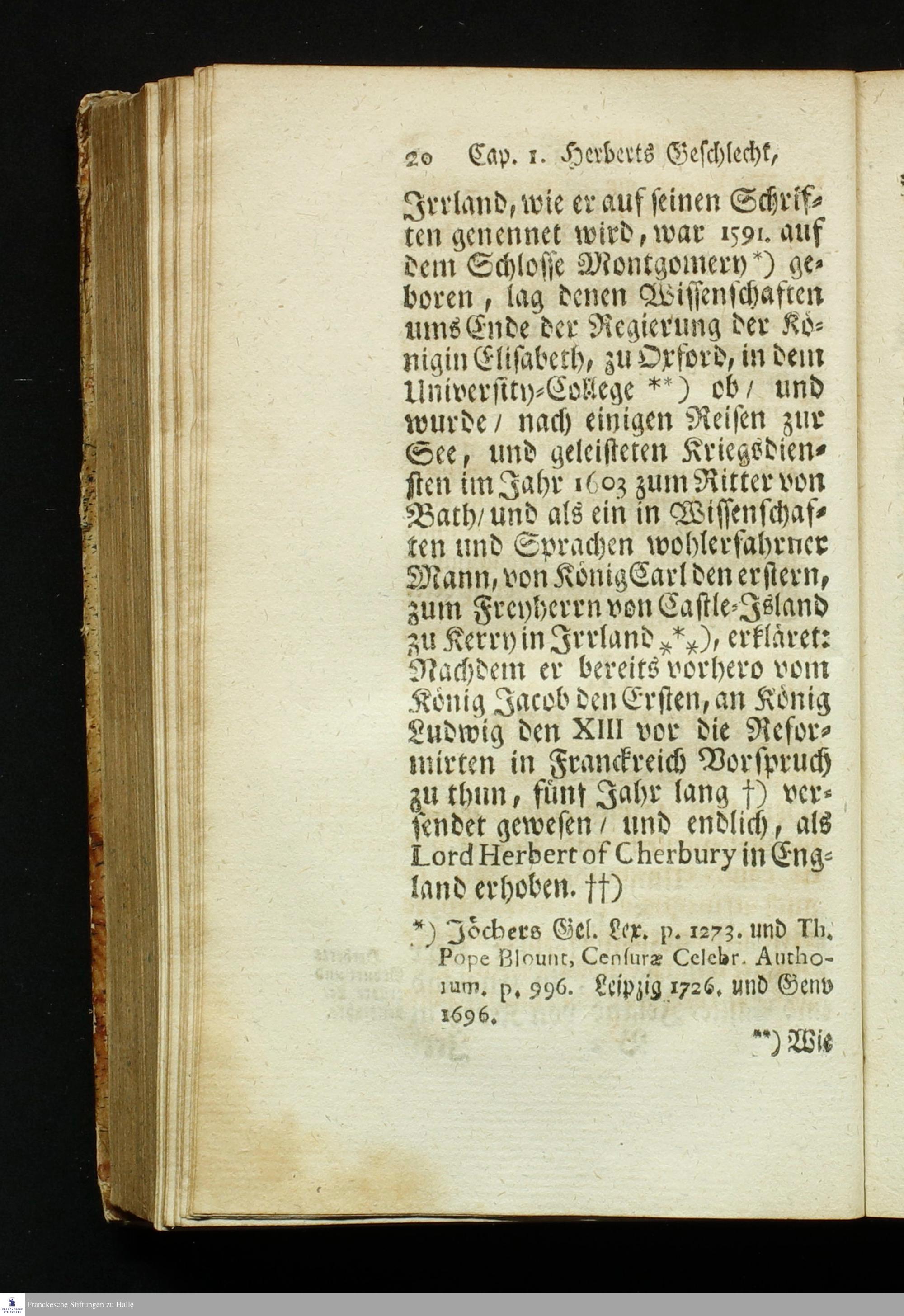 Worinne besonders Von dem Leben, Schrifften, Nachfolgern und Gegnern des berühmten und gelehrten Englischen Lords Edoard Herbert de Cherbury [et]c. als deren Vorgängers und Anführers, gehandelt wird, Aus seinen eignen Schrifften und vielen besondern Nachrichten zusammen getragen und mit nöthigen Anmerckungen erläutert / von Christoph Gottlob Grundig, A.M.V.D.M.