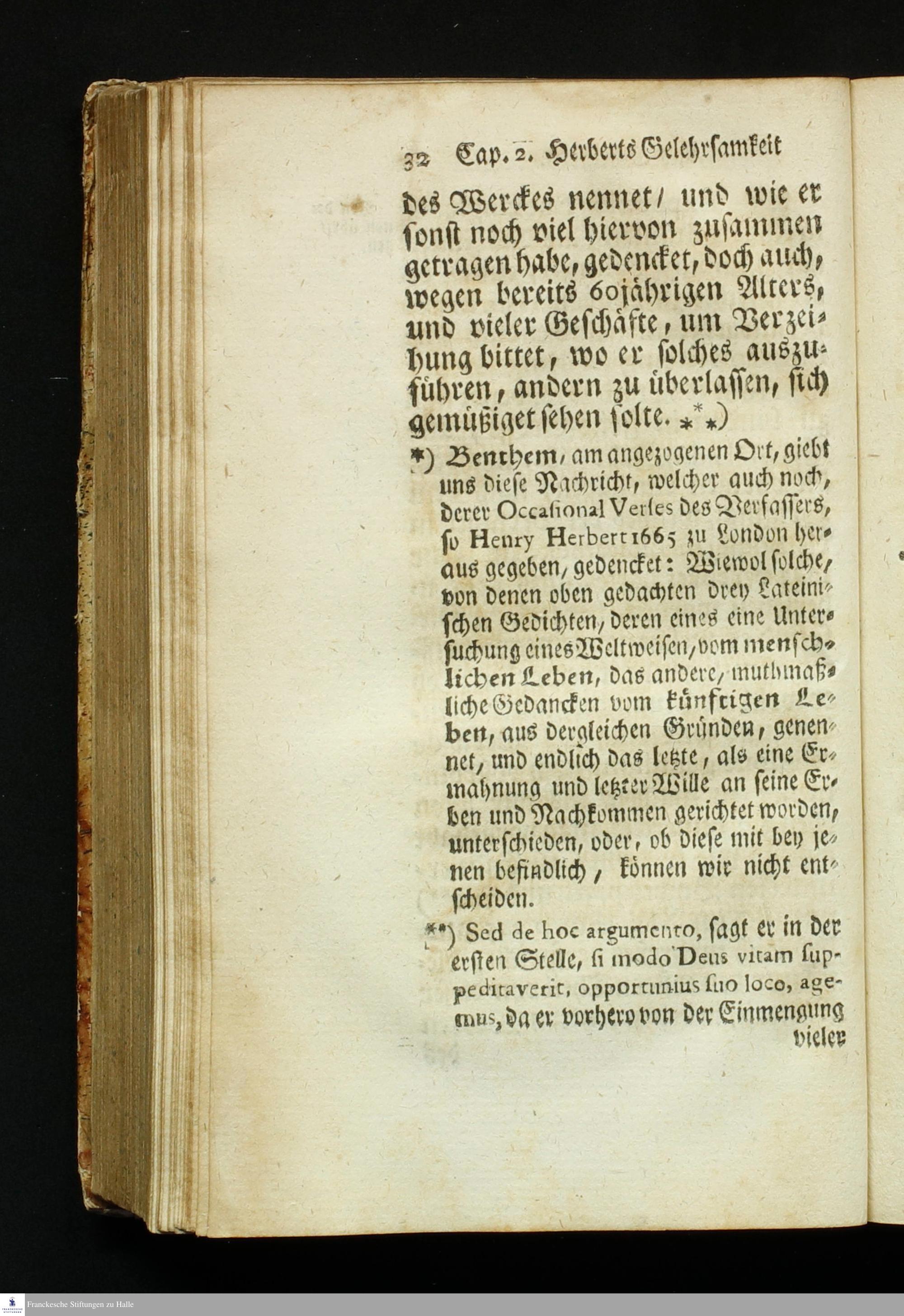 Worinne besonders Von dem Leben, Schrifften, Nachfolgern und Gegnern des berühmten und gelehrten Englischen Lords Edoard Herbert de Cherbury [et]c. als deren Vorgängers und Anführers, gehandelt wird, Aus seinen eignen Schrifften und vielen besondern Nachrichten zusammen getragen und mit nöthigen Anmerckungen erläutert / von Christoph Gottlob Grundig, A.M.V.D.M.