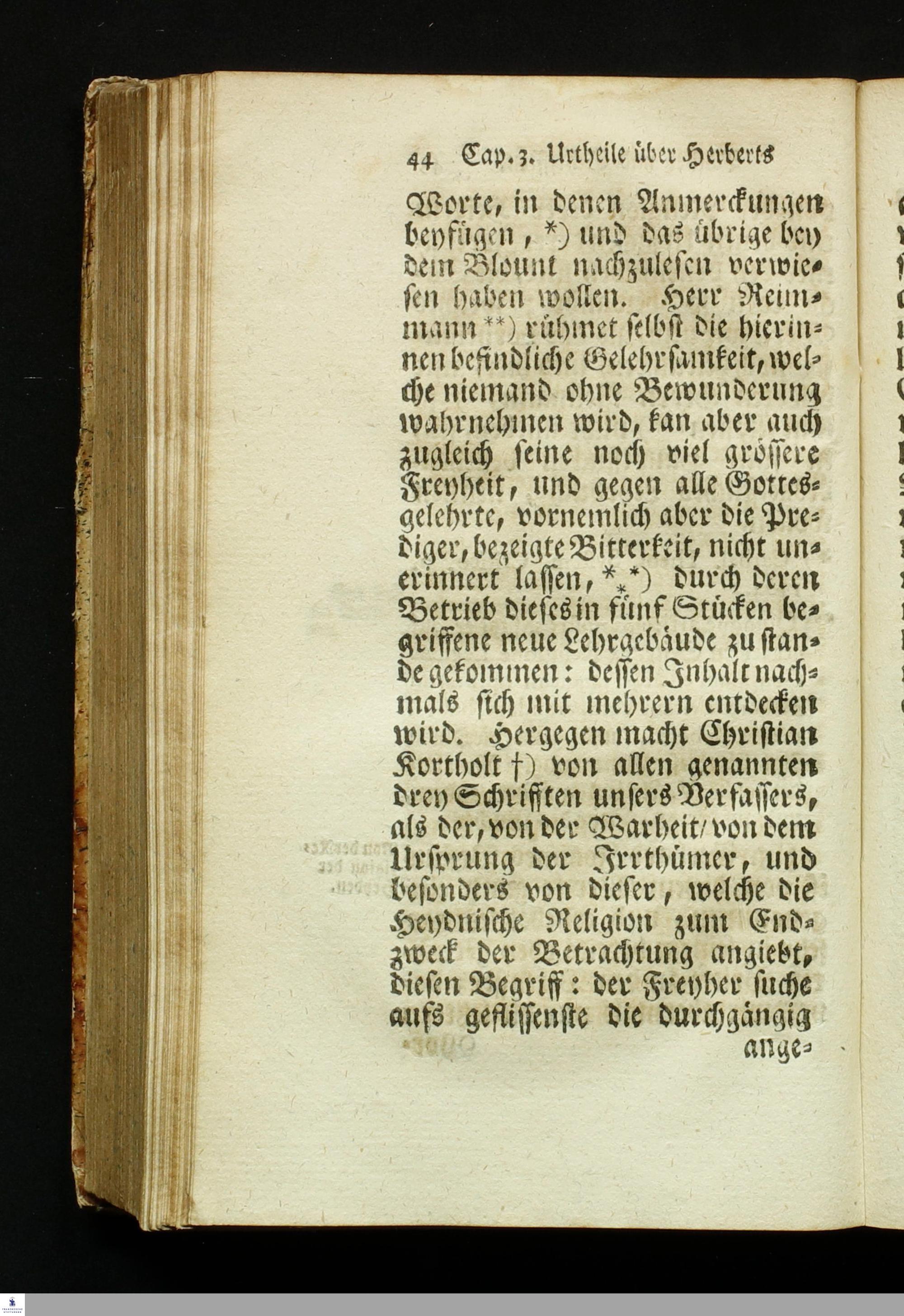 Worinne besonders Von dem Leben, Schrifften, Nachfolgern und Gegnern des berühmten und gelehrten Englischen Lords Edoard Herbert de Cherbury [et]c. als deren Vorgängers und Anführers, gehandelt wird, Aus seinen eignen Schrifften und vielen besondern Nachrichten zusammen getragen und mit nöthigen Anmerckungen erläutert / von Christoph Gottlob Grundig, A.M.V.D.M.