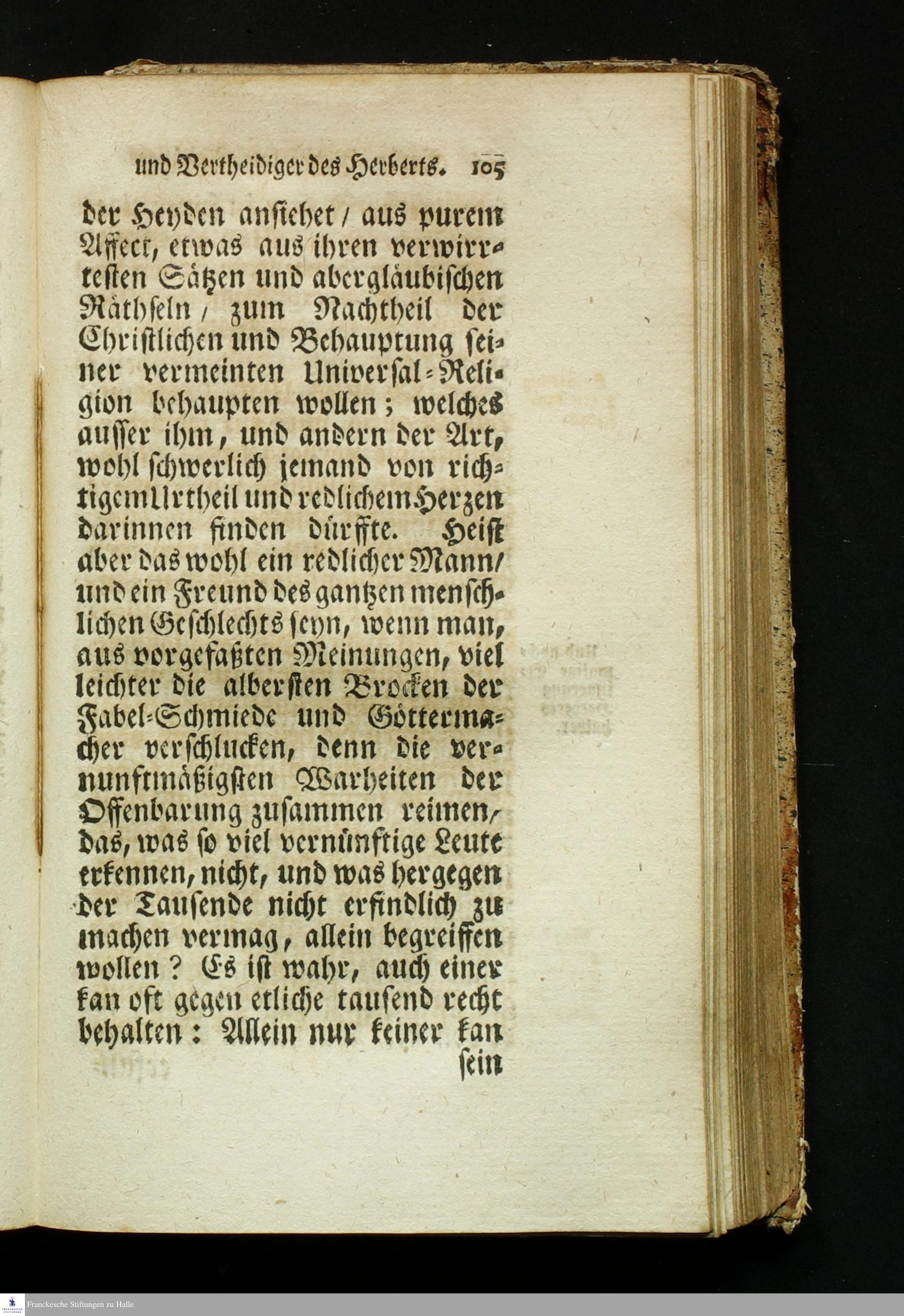 Worinne besonders Von dem Leben, Schrifften, Nachfolgern und Gegnern des berühmten und gelehrten Englischen Lords Edoard Herbert de Cherbury [et]c. als deren Vorgängers und Anführers, gehandelt wird, Aus seinen eignen Schrifften und vielen besondern Nachrichten zusammen getragen und mit nöthigen Anmerckungen erläutert / von Christoph Gottlob Grundig, A.M.V.D.M.
