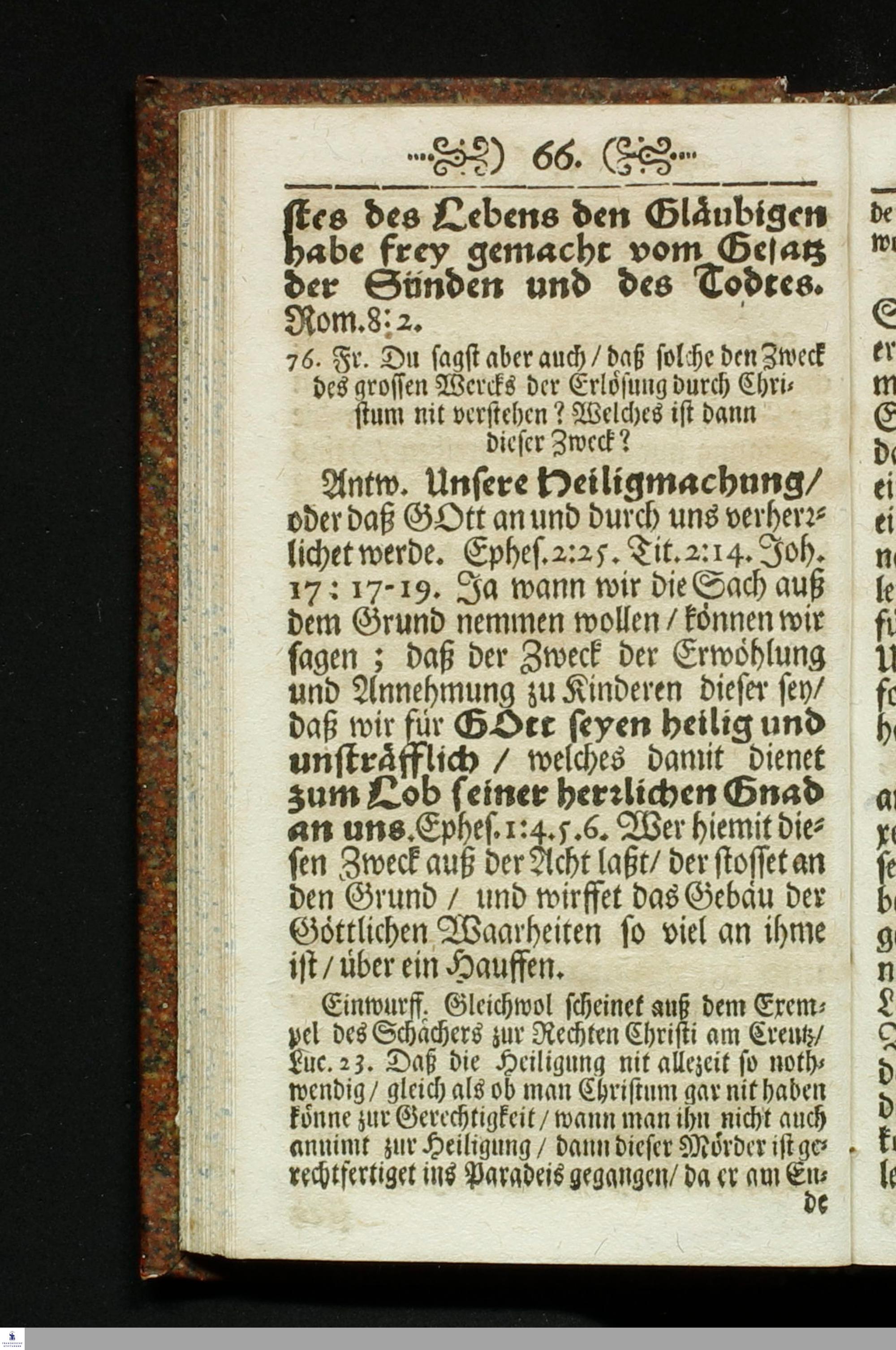 Kurtzer und einfaltiger Bericht/ von dem kräfftigen Zug und Gang der Gnaden. Oder Wie Gott in Christo sein Gnadenwerck durch den H. Geist in der Seelen anfange fortsetze und zum Ende bringe : Gegründet auf Gottes Wort/ und die tägliche Erfahrung : Durch Frag und Antwort den Anfängeren des Christenthums vorgestellt und getreulich anbefohlen/ von einem der sich in der Gnad nit höher schätzte als ein Junges Milch-Kind.